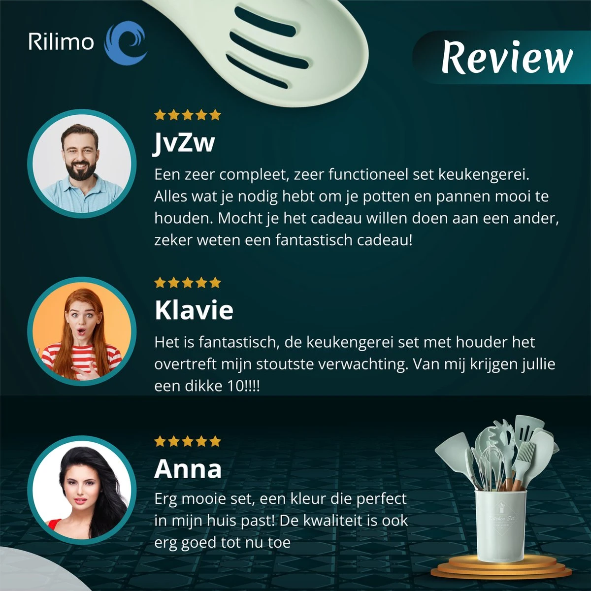 Vindt u het ook lastig om steeds te moeten zoeken naar uw keukengerei? Met deze 12-delige keuken set van Rilimo is dit verleden tijd. Deze set staat als een eyecatcher op uw aanrecht, praktisch en verzorgt alle keukenbenodigdheden tot uw bereik. Met deze set bent u elk recept de baas. Deze set is zeer compleet en biedt voor elke need de juiste benodigdheden. Start vandaag nog met koken van uw favoriete gerechten met de perfecte benodigdheden.