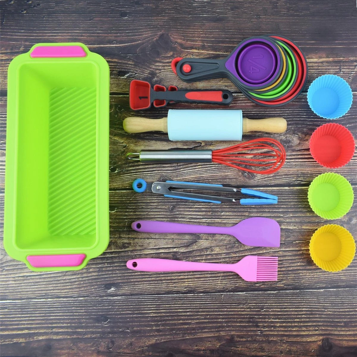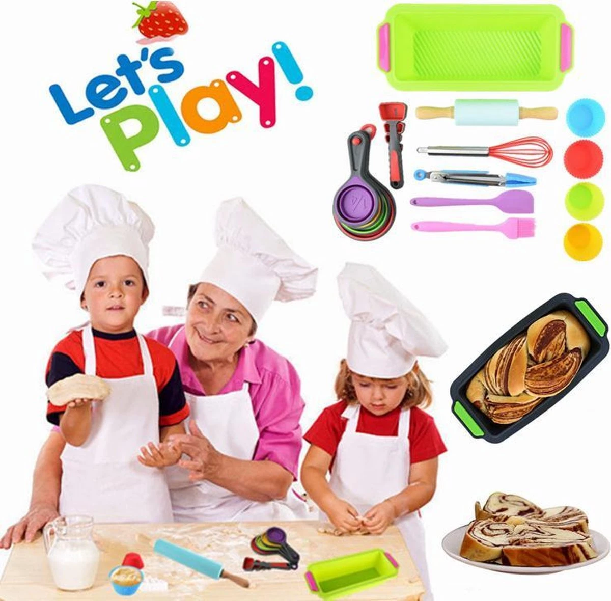Ook op jonge leeftijd kun je nu aan de slag in de keuken met deze leuke kinderbakset! Geef jouw dochter, zoontje, neefje of nichtje deze leuke kinderbakset cadeau! Met deze set is een lekkere cake of cupcakes bakken kinderspel. De bakspullen zijn van siliconen zonder scherpe randjes. Uw kind kan zich dus ten alle tijden veilig bakken.
