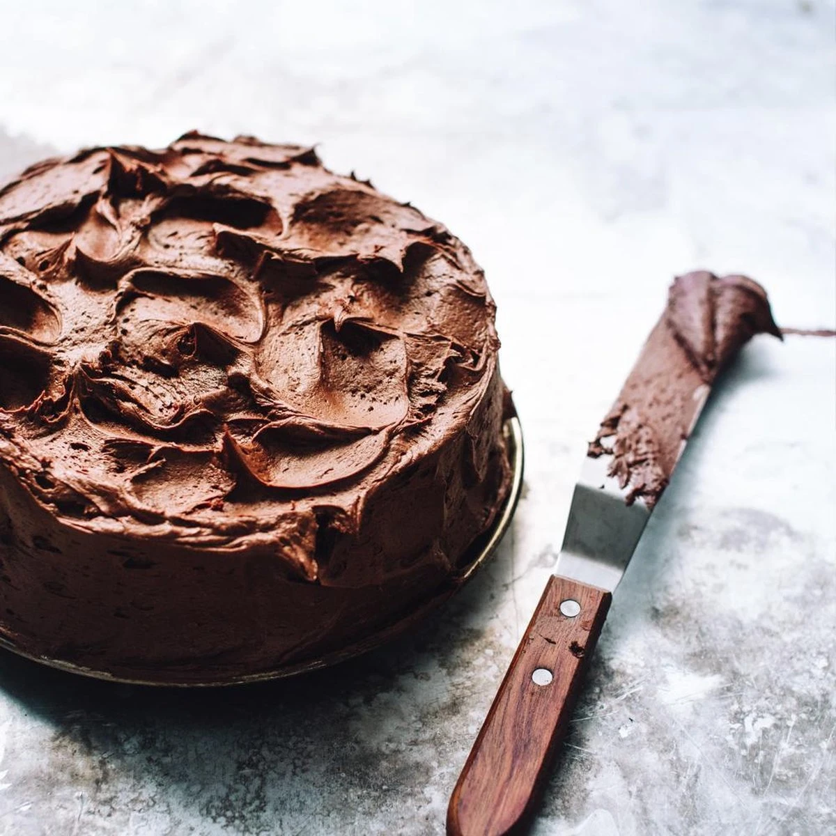 Met behulp van het glaceermes verdeel je een vulling gelijkmatig over een versgebakken cake of taart. Een goed laagje crème au beurre of liever wat confituur? Met het glaceermes smeer je het er vingerdik op.