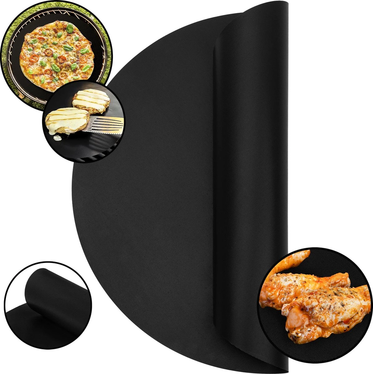 Deze ronde grillmat heeft een Teflon anti-aanbaklaagje. De teflon mat heeft een glad oppervlak dat eenvoudig te reinigen is. Het product is geurloos en kan maar liefst 100 keer gebruikt worden. Het is wel belangrijk dat de maximale temperatuur van 360 graden Celsius niet overschreden wordt. De mat is volledig veilig verklaard, waardoor je er zeker van kan zijn dat het product geen giftige stoffen achterlaat op het voedsel, of een negatieve invloed heeft op de kwaliteit van het eten.