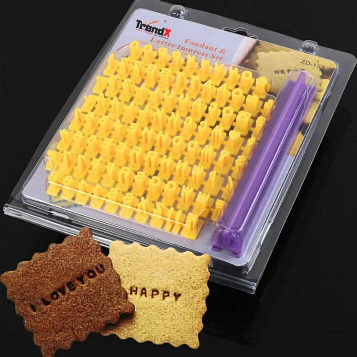 Schuif gewoon de letters en steun om een naam of speciale berichten te vormen, druk op en het koekjesdeeg en uw letters worden op de cookie afgedrukt.