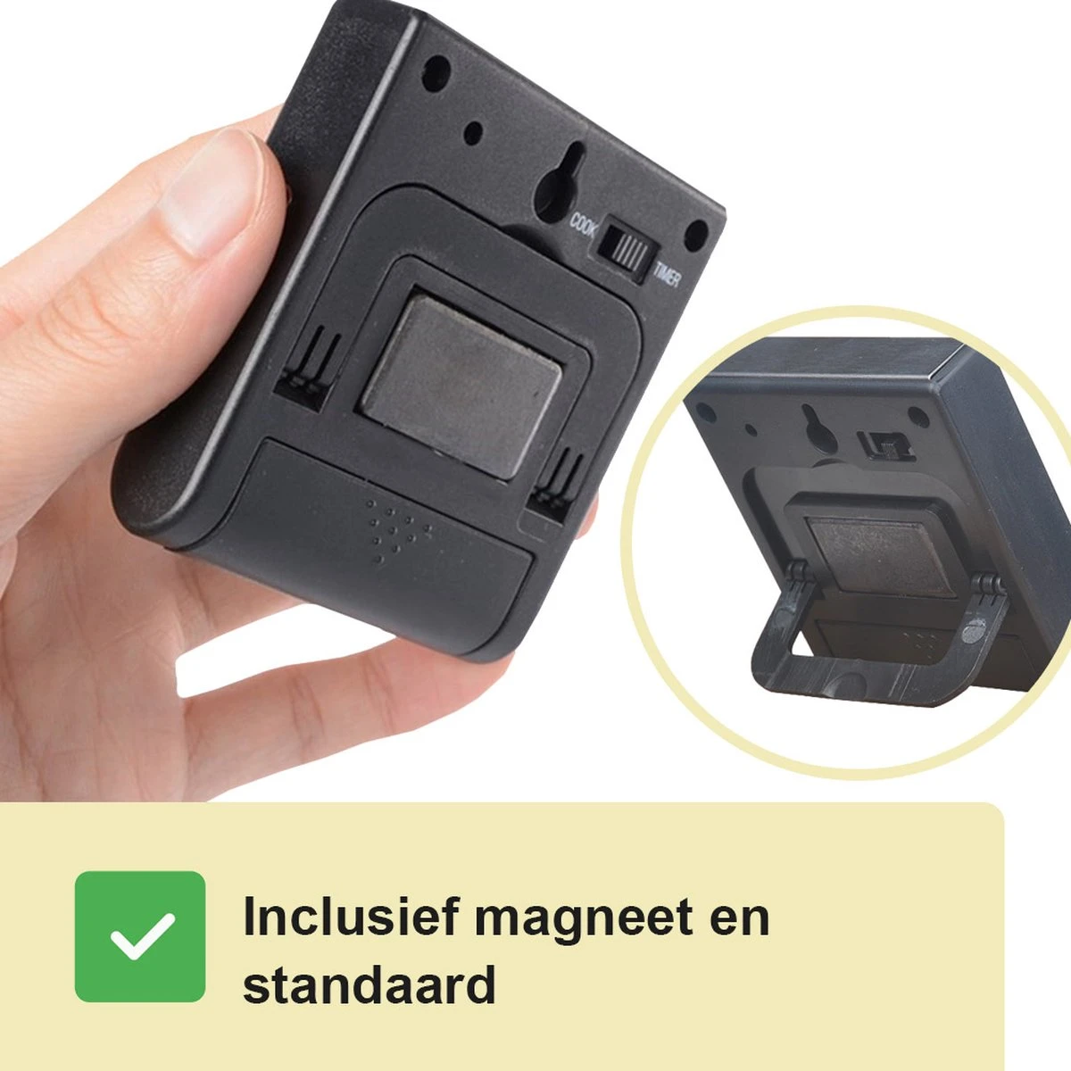 Het fijne aan deze thermometer is dat je een gewenste temperatuur kan instellen. Wanneer deze temperatuur bereikt is, zal er een alarm af gaan en weet je dat je stuk vlees de perfecte kerntemperatuur heeft bereikt. Zo hoef je niet telkens de oven open te doen om de meetstang in het vlees te steken, maar kan je deze gewoon laten zitten.