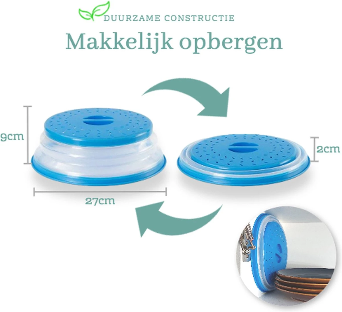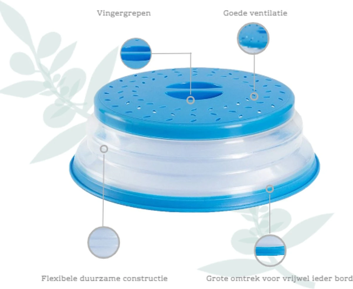 De inklapbare deksel is makkelijk te gebruiken en past met een diameter van Ø 27CM over vrijwel ieder dinerbord. De gaatjes aan de bovenzijde van de deksel zorgen voor optimale ventilatie en kunnen tevens als vergiet gebruikt worden voor bijvoorbeeld het schoonmaken van verse groenten.