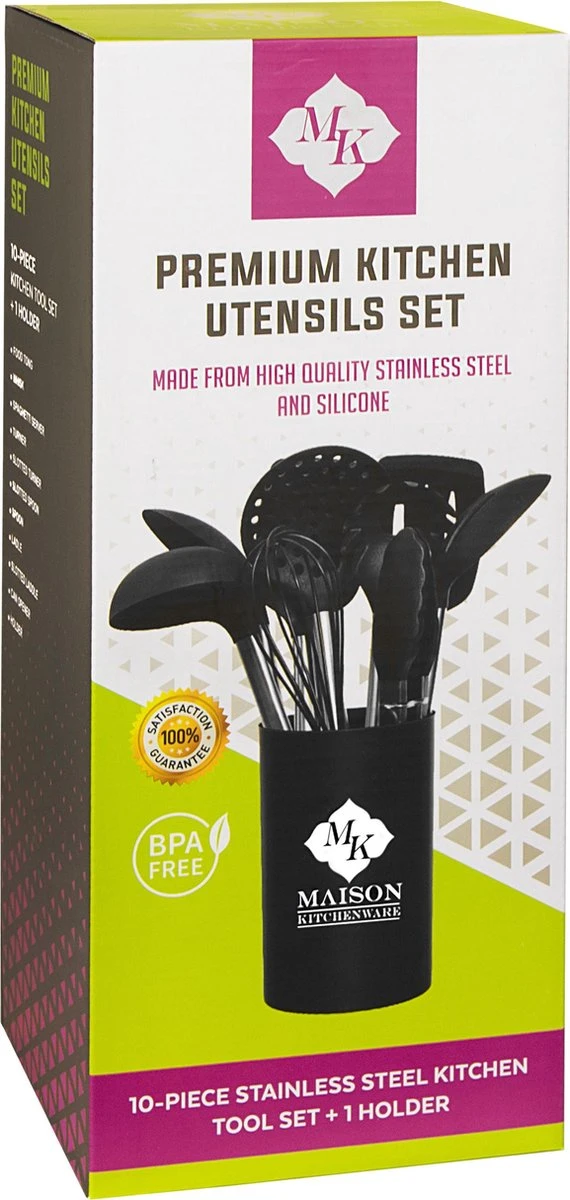 Onze 10-delige keukenaccessoireset wordt compleet geleverd met: