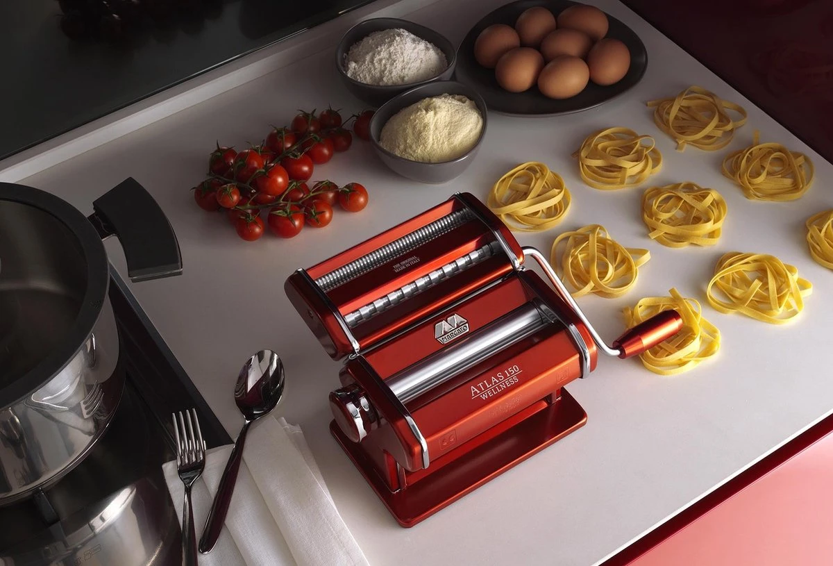 De Atlas 150 is bij uitstek de meest veelzijdige pastamachine die je je maar kunt wensen! Deze stijlvolle pastamachine is ideaal voor het bereiden van huisgemaakte pasta. De machine ziet er eenvoudig maar zeer elegant uit en is eenvoudig handmatig te bedienen. Met de Atlas 150 maak je drie soorten pasta: lasagne, tagliolini en fettuccini. Omdat de kop verwisselbaar is, is het mogelijk om extra opzetstukken aan te schaffen waardoor je nog meer soorten pasta maakt.
