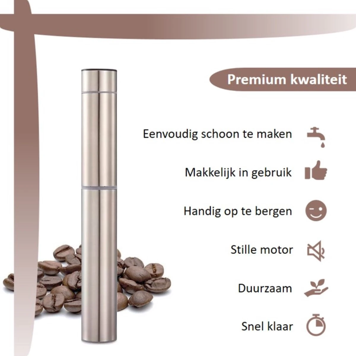 Onze Melkopschuimer is duurzaam ontwikkeld met 304 roestvrij staal en ABS plastic zodat deze een langere levensduur heeft. Een veilige en milieubewuste keuze!