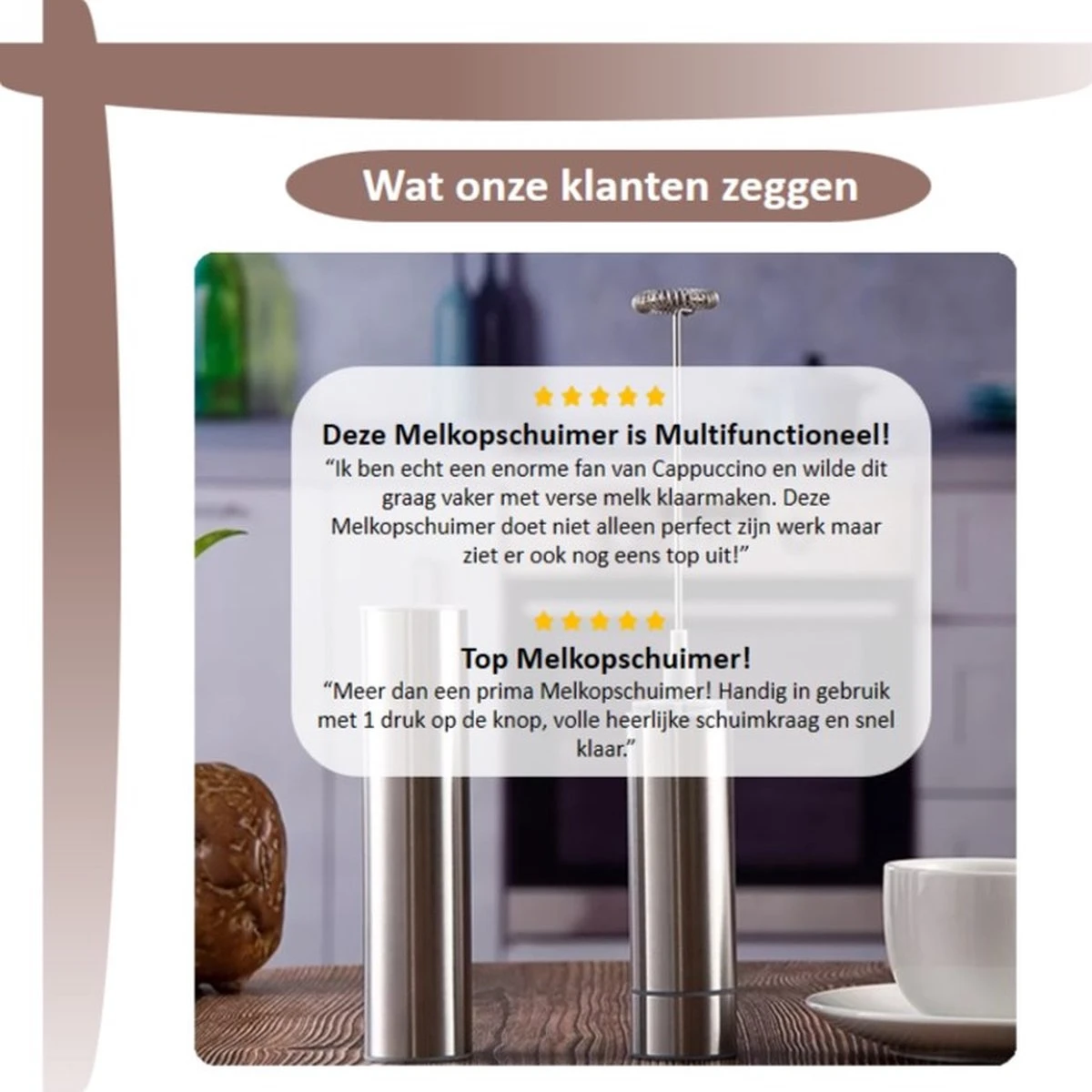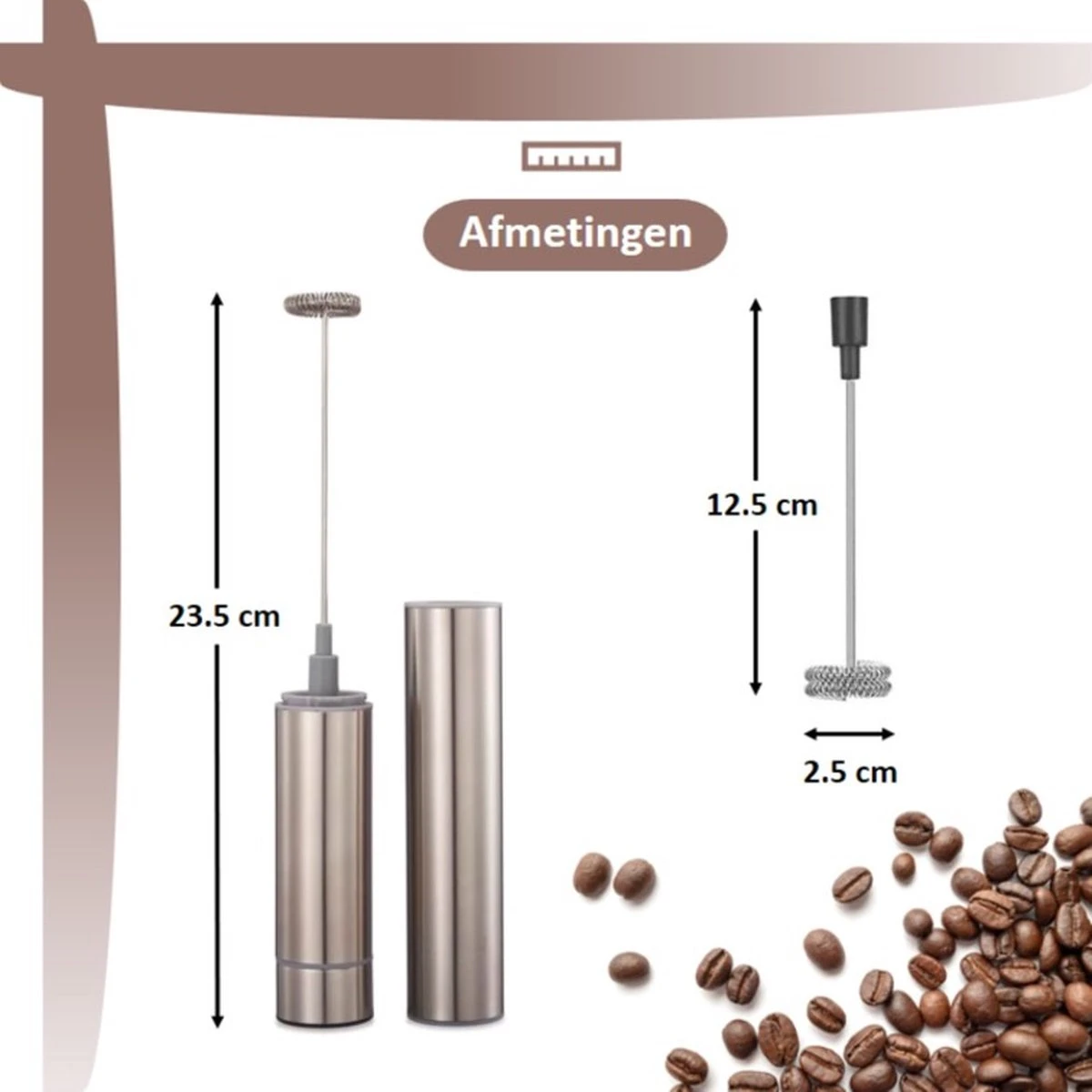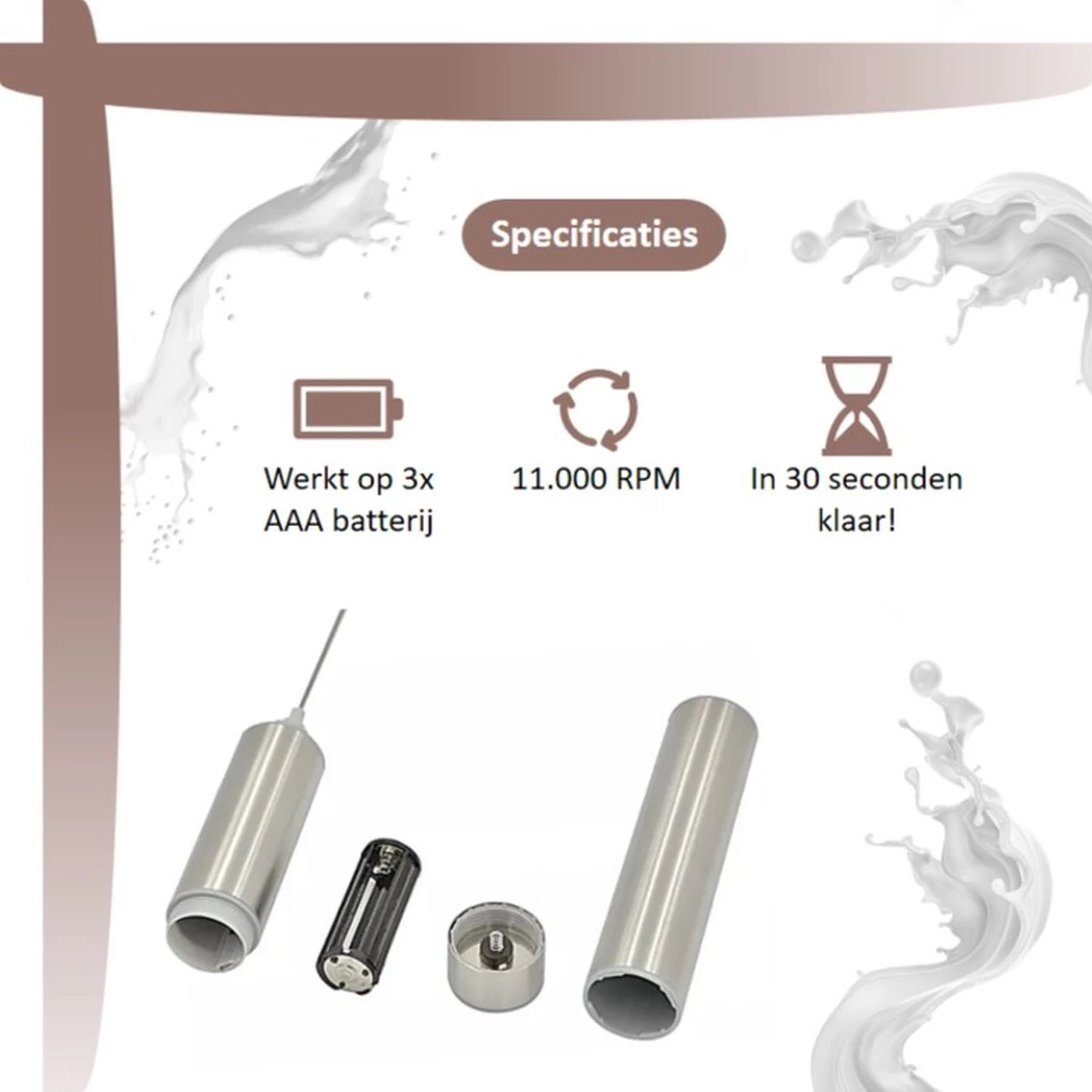 Doordat onze Melkopschuimer op batterijen werkt hoeft deze niet telkens opgeladen te worden en ben je altijd verzekerd van een volle werking!