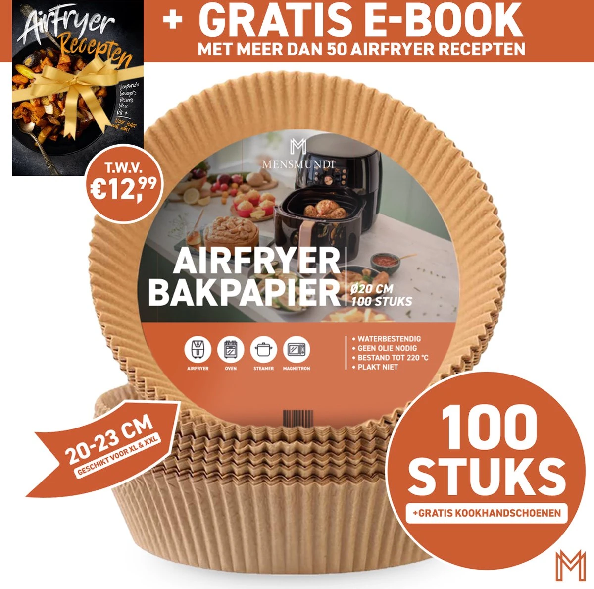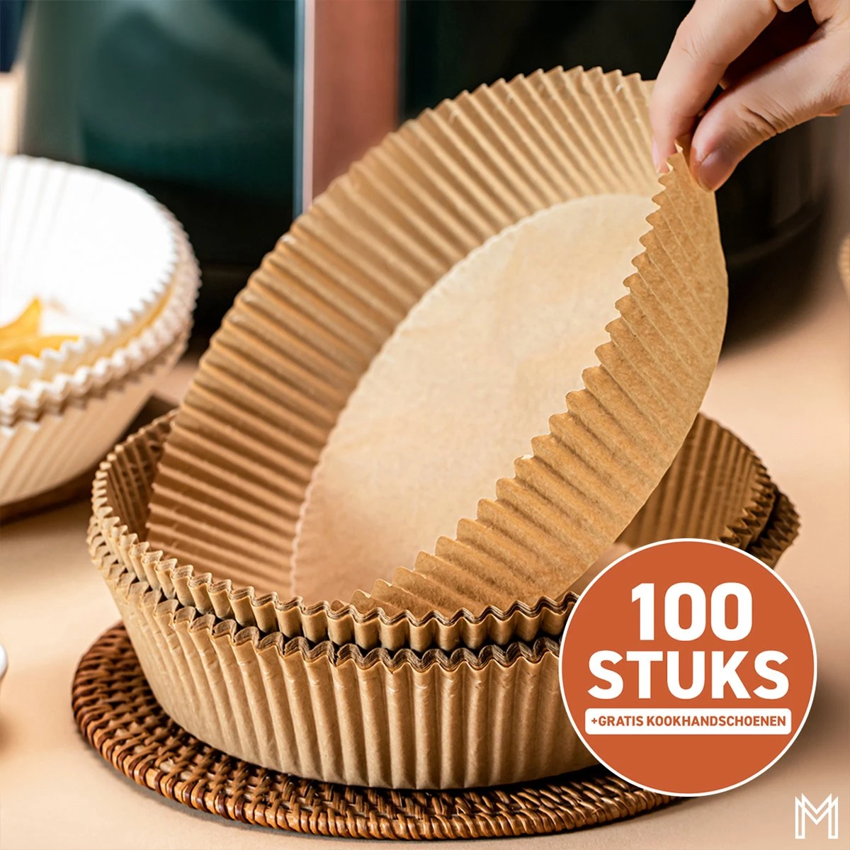 - Inhoud: 100 stuks airfryer bakpapier + gratis kookhandschoenen