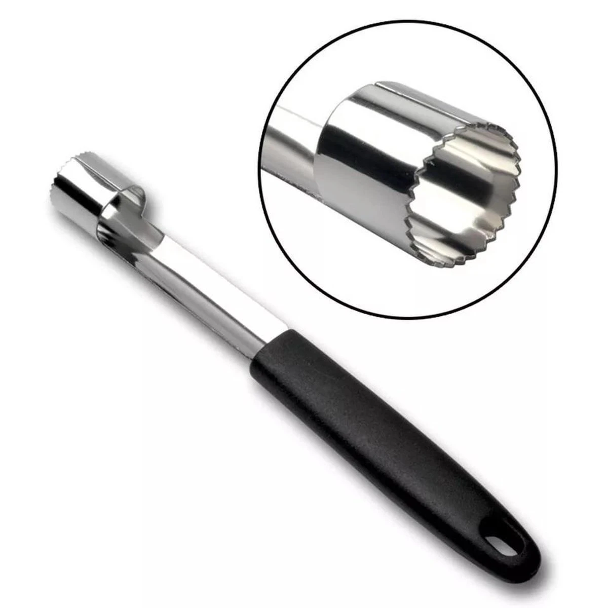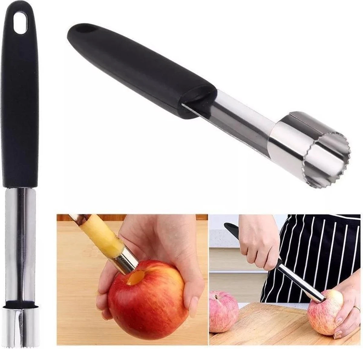 De boor heeft een scherp, gekarteld uiteinde waarmee je gemakkelijk door verschillende soorten fruit heen kunt snijden. De appelboor is in eerste instantie voor het verwijderen van het klokkenhuis uit appels, maar is ook geschikt voor het uithollen van andere fruitsoorten.