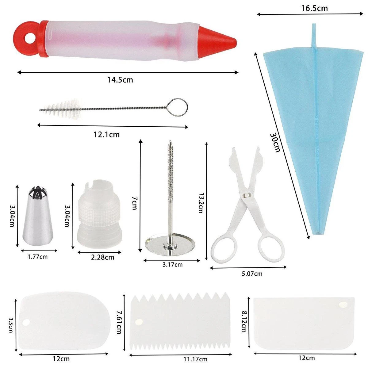 Je bakt en decoreert zelf cupcakes met de 39-delige bak en decoreer cupcake set. De set bestaat onder andere uit een roterende draaitafel met verborgen kogellagers. Deze helpt je om gemakkelijk taarten te decoreren voor allerlei evenementen. De tafel draait met de klok mee en tegen de klok in. Hierdoor is hij goed te gebruiken voor zowel links- als rechtshandigen. Bovendien is hij van topkwaliteit materialen gemaakt die vaatwasmachinebestendig zijn. Om te voorkomen dat de tafel voor taarten tot 28 cm ongewenst beweegt, heeft hij een antisliprand. Je gebruikt hem desgewenst ook om een taart te serveren.