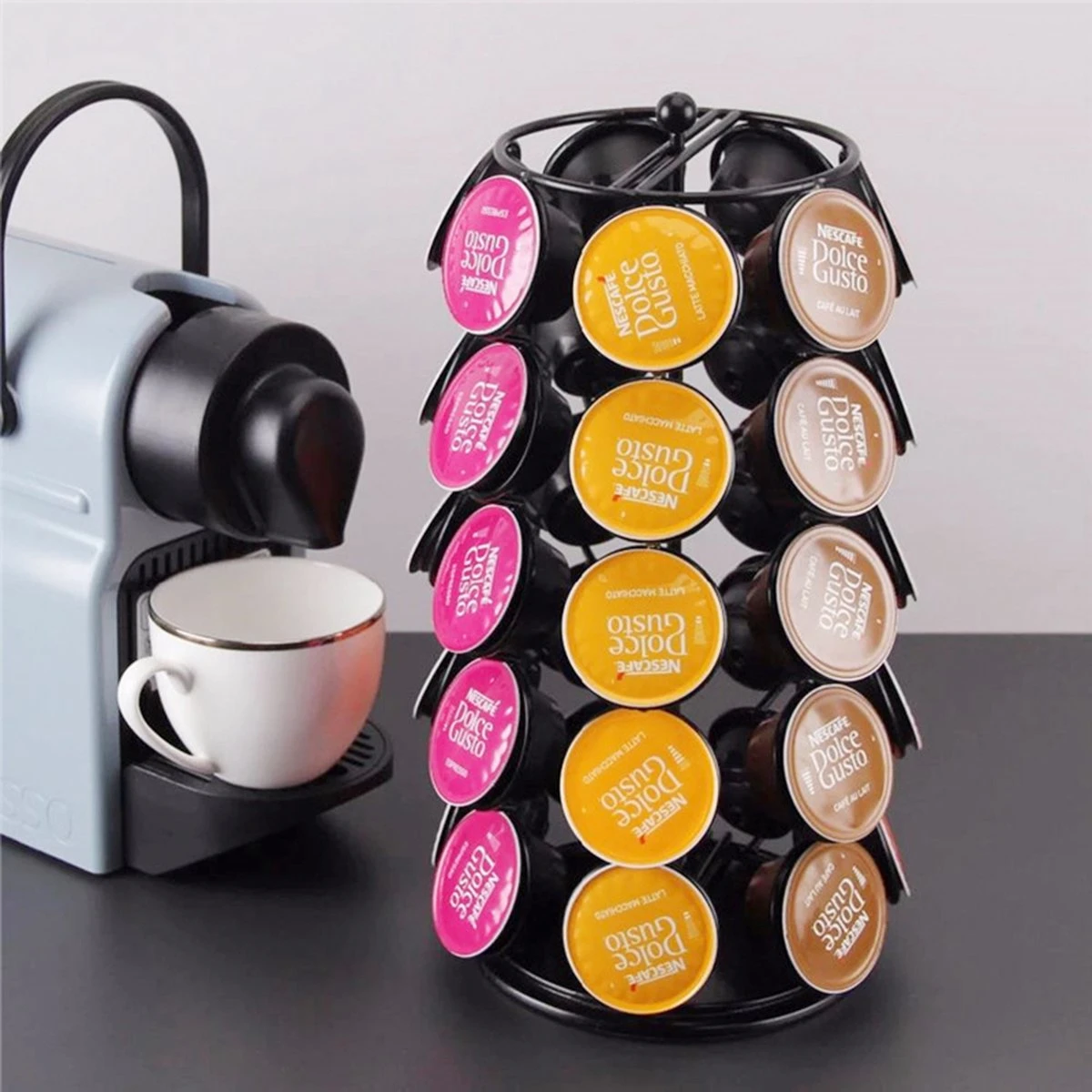 Capsulehouder carrousel. Hierin berg je al je Dolce Gusto koffie capsules gemakkelijk op. Je favoriete smaak koffiecup pak je eenvoudig doordat de de koffiecup houder een draaifunctie heeft. Hierdoor is hij 360 graden te roteren.