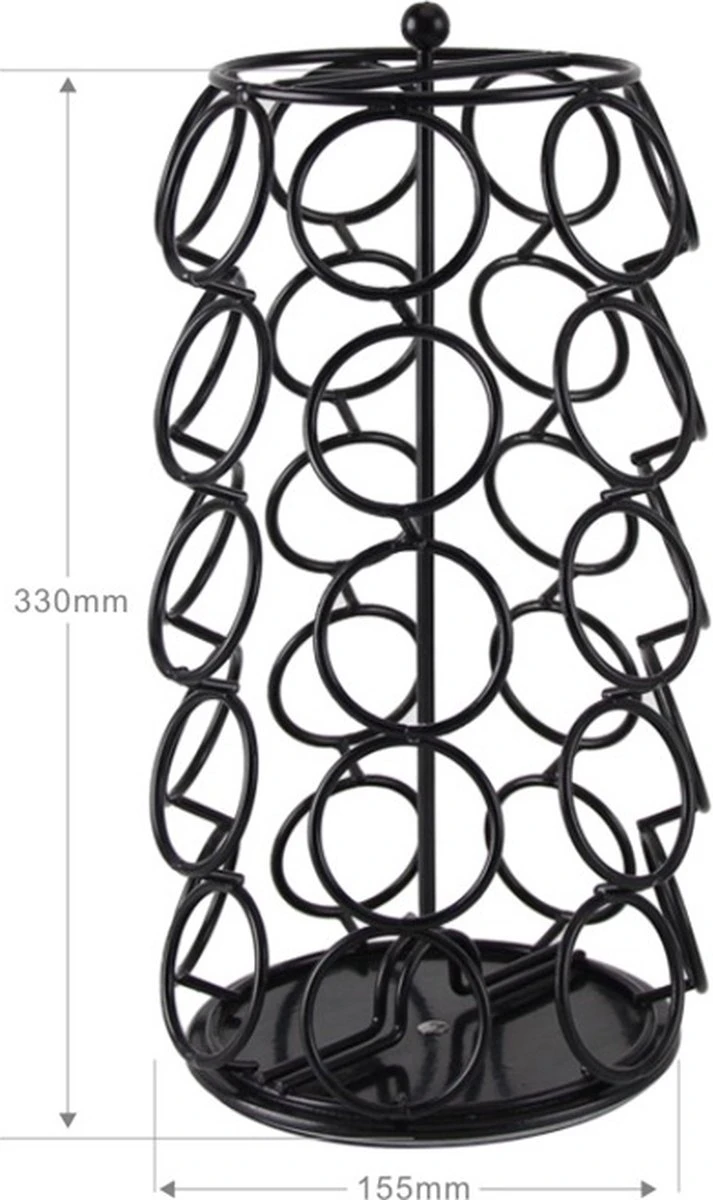 De capsulehouder is robuust gepoedercoat in de kleur glans zwart en geschikt voor 35 capsules van Dolce Gusto of vergelijkbare cups.