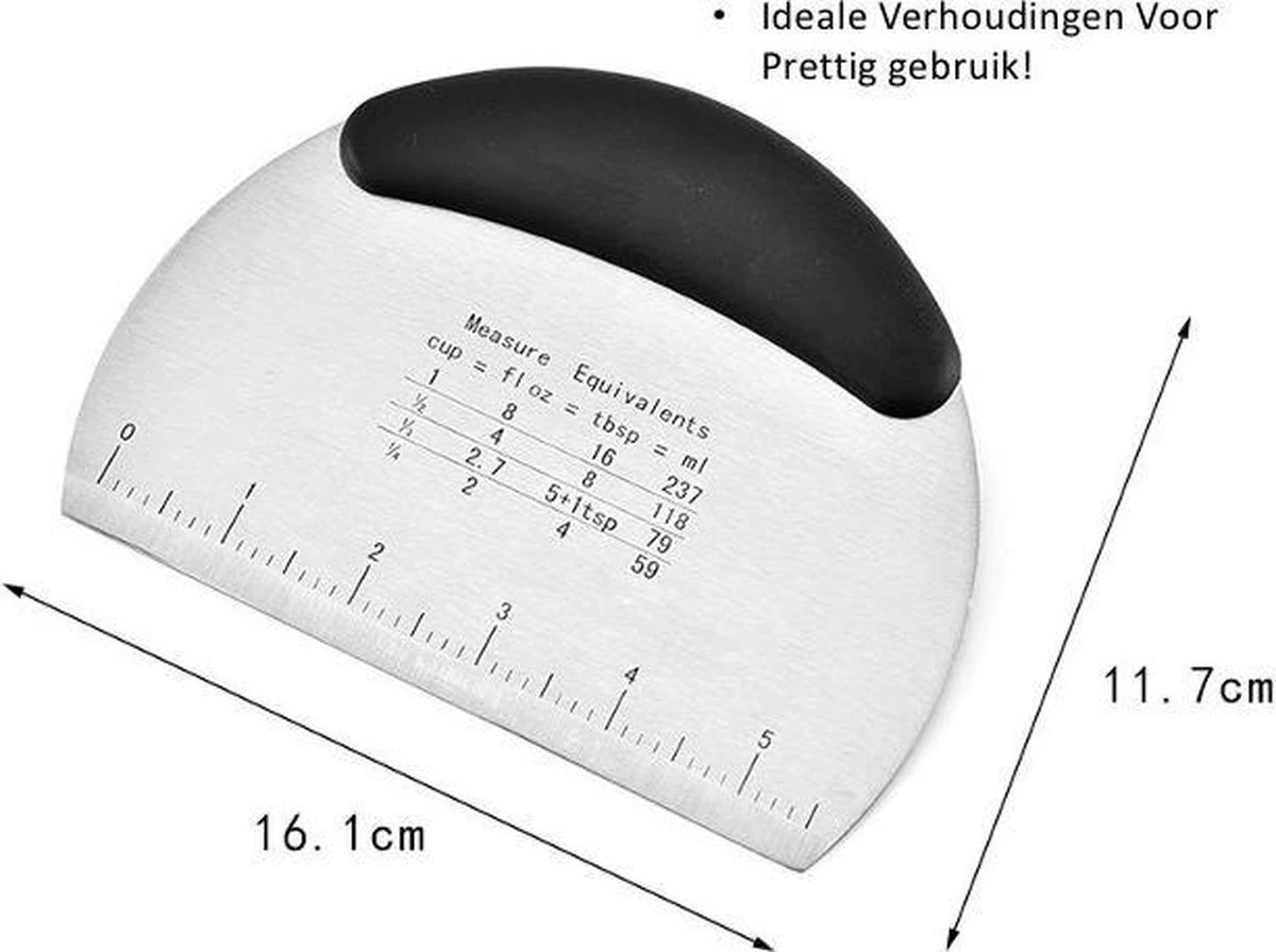 - Multifunctioneel keukenhulpmiddel voor het werken met deeg, hakken en meten