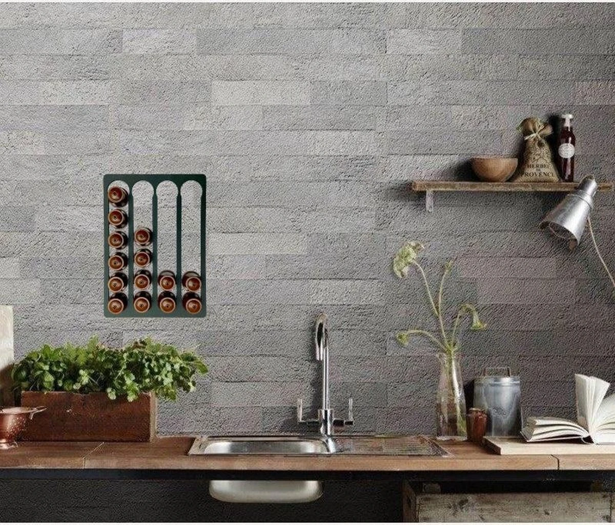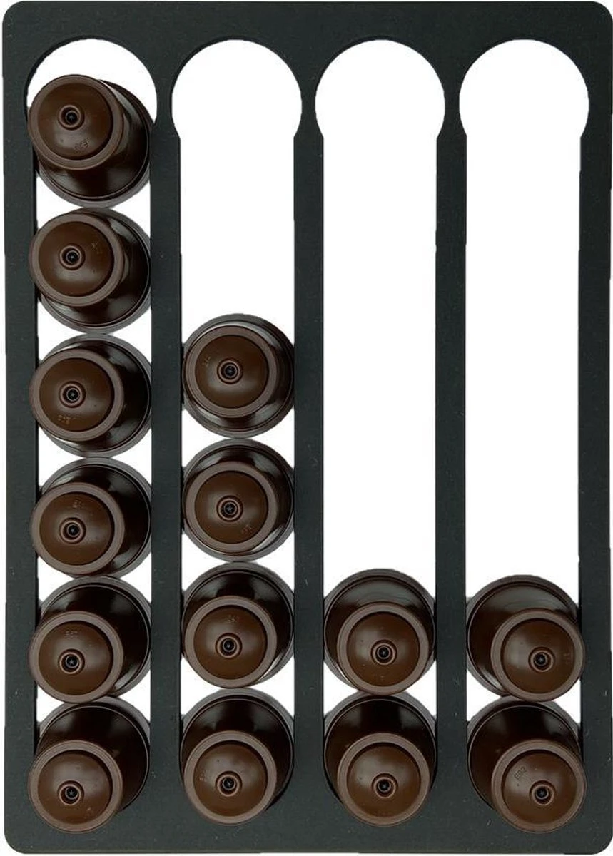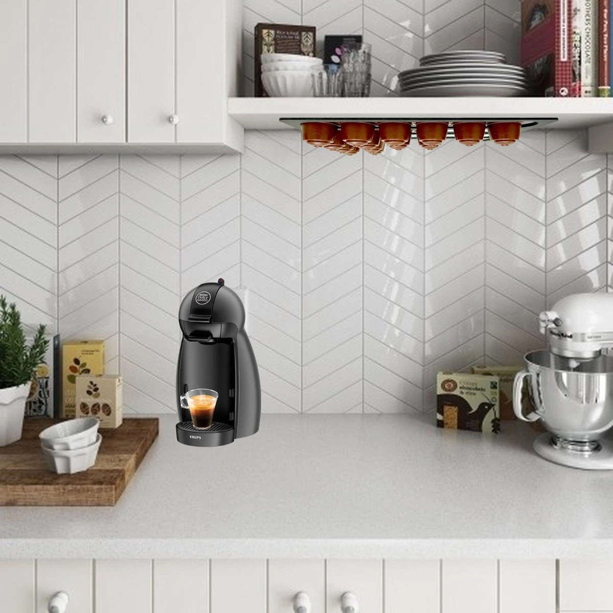 Deze capsulehouder is speciaal ontworpen om uw Dolce Gusto cups op een minimalistische en stijlvolle manier op te hangen en te sorteren. De capsulehouder is op te hangen in de de kast, onder de kast, op de muur, etcetera. Let op, ophangen op een vlakke ondergrond! Met een grootte van 36×25.7cm is er altijd wel ergens plaats in of bij uw keuken om de houder op te hangen. Door de zwarte kleur past de capsulehouder bij ieder interieur. U kunt 24 Dolce Gusto cups kwijt in deze capsulehouder.