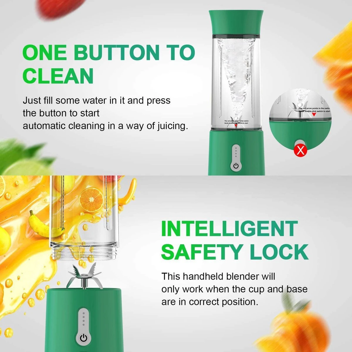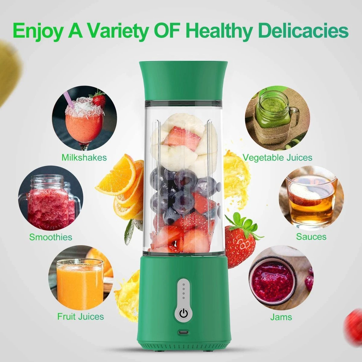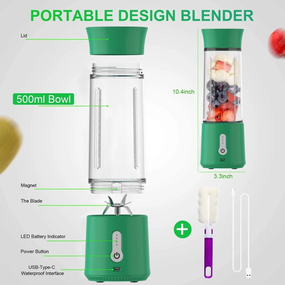 Dankzij zijn compact formaat en lichtgewicht neem je de draadloze blender makkelijk mee onderweg. Door zijn 500 ml inhoud heb jij een volledig sapje, smoothie, milkshake of babyvoeding. Gezond en lekker waar en wanneer jij wilt!