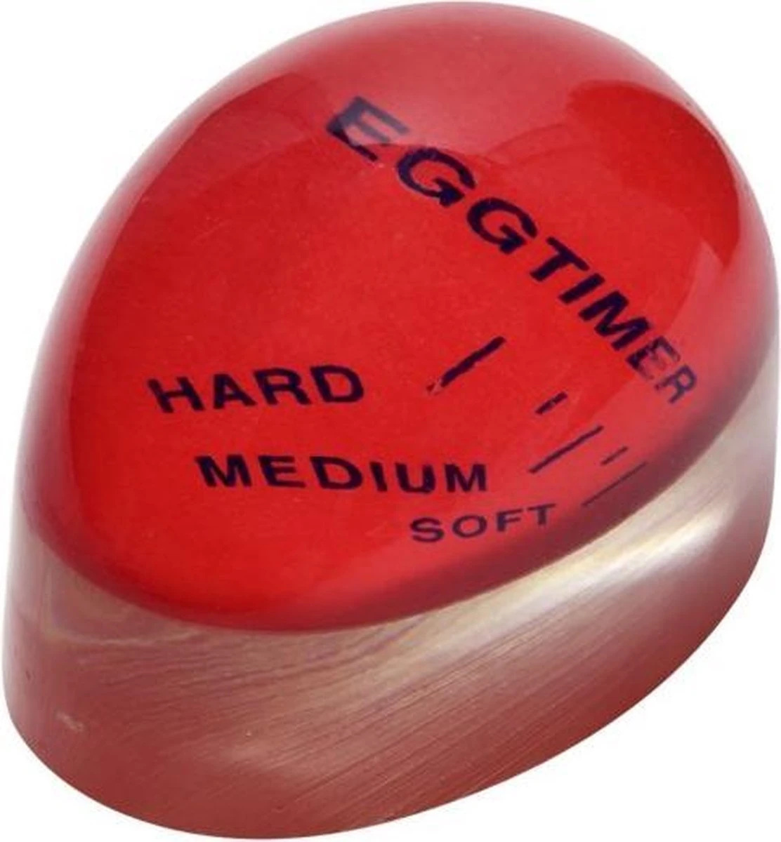 Dit ei wekker verandert van kleur zodat je precies weet of je een hard of zacht ei hebt. Is het ei bijna helemaal rood dan is het een zacht gekookt ei.