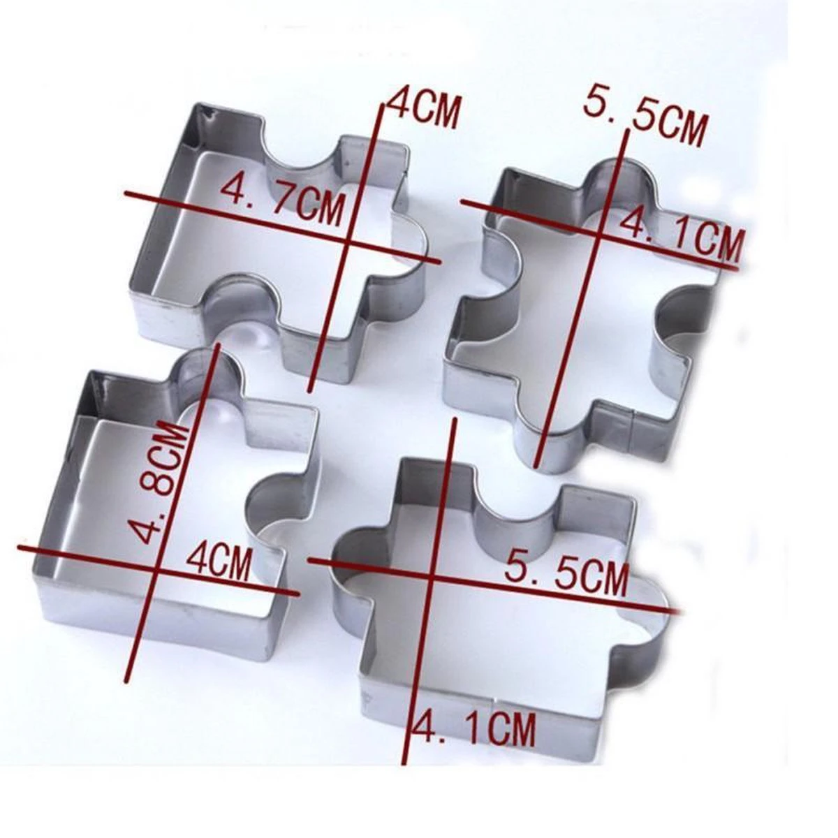 Merkloos LeuksteWinkeltje Uitsteekvormpjes Puzzel RVS Uitstekers Koekjes Fondant – 4 Stuks