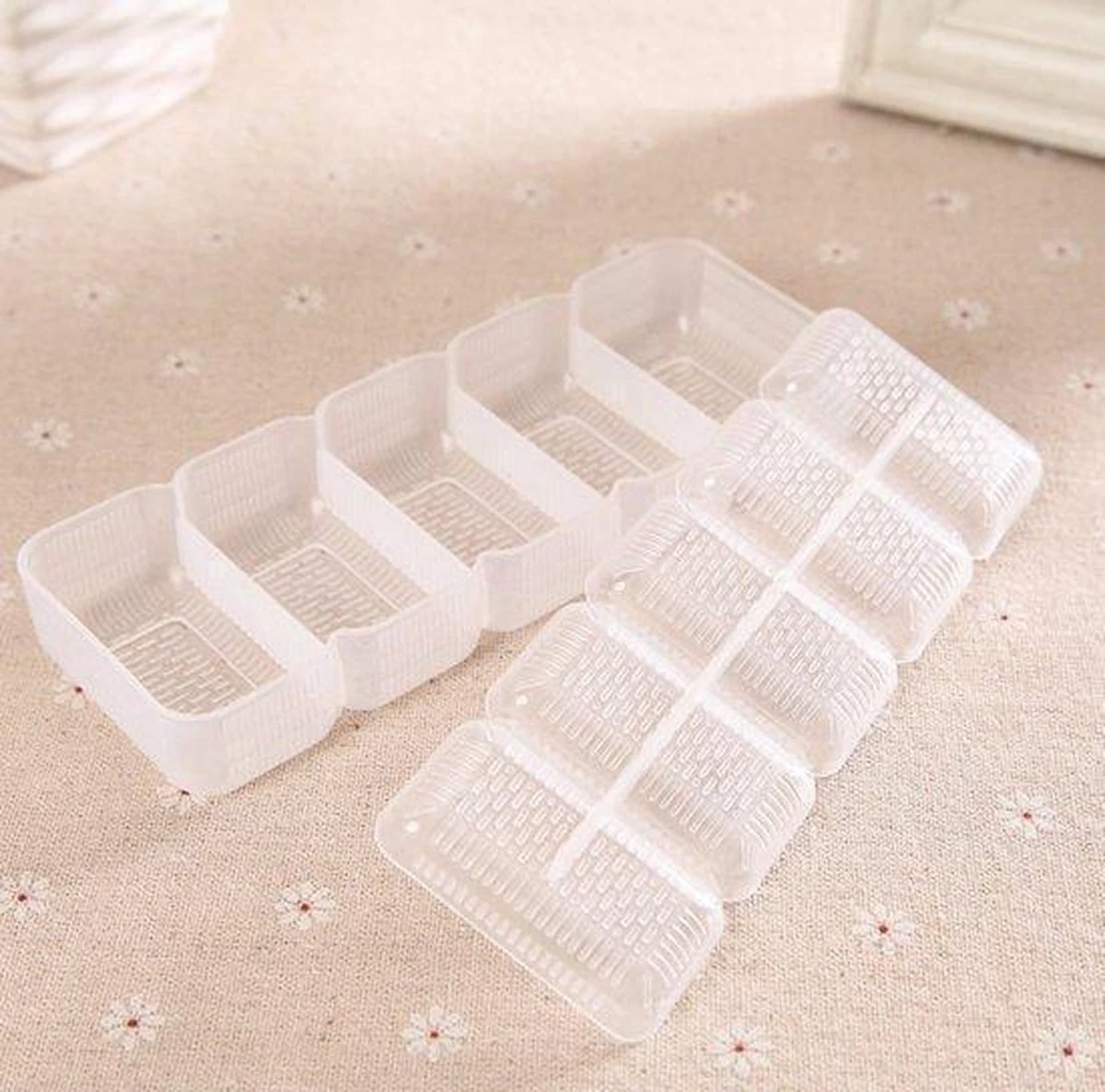De Nigiri Sushi mal is gemaakt van plastic en kan eenvoudig schoon gemaakt worden. Handmatig óf in de vaatwasmachine.