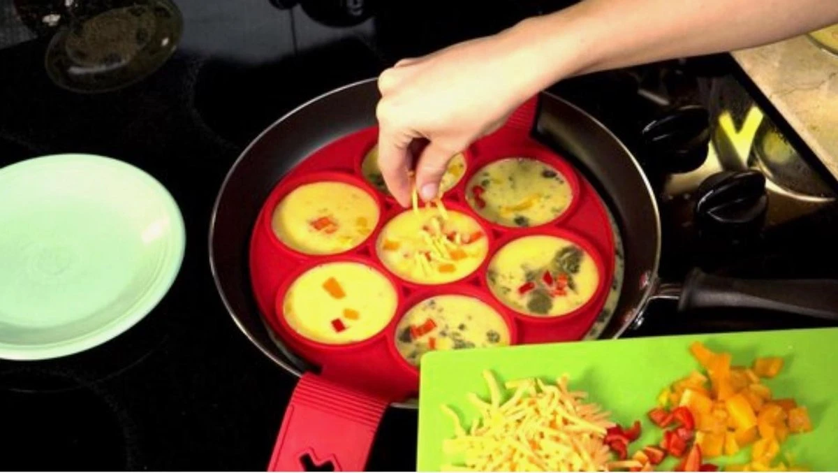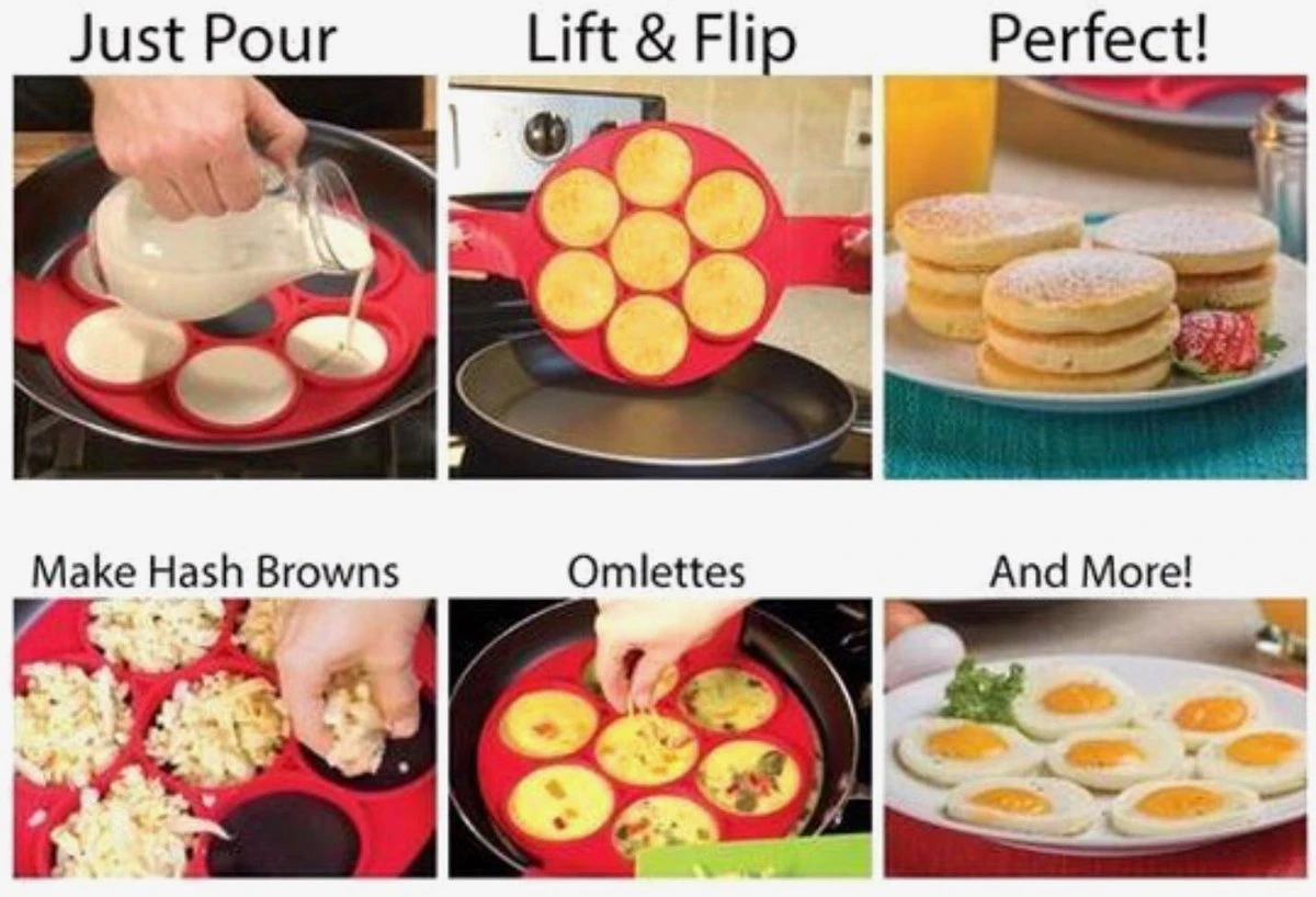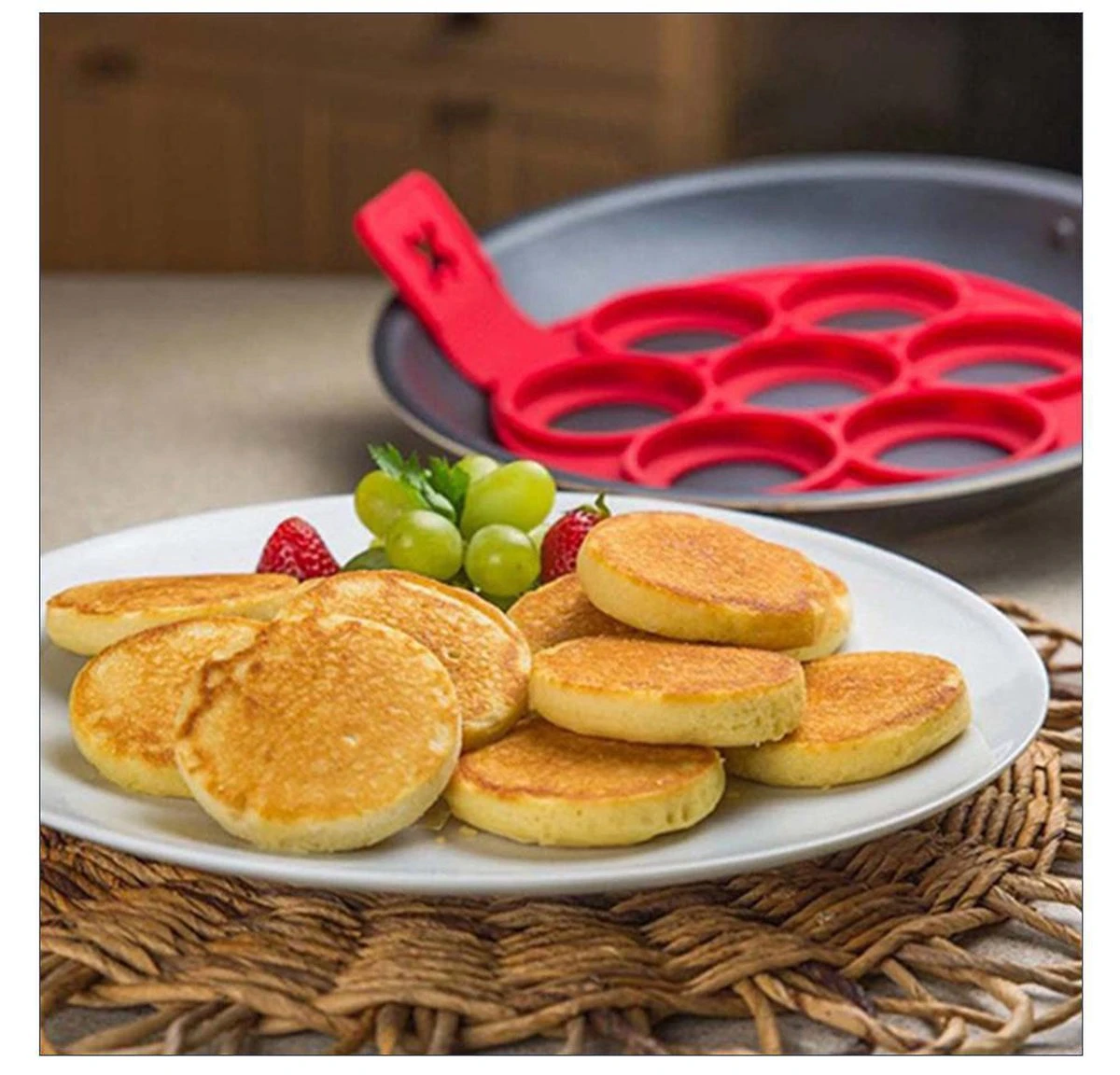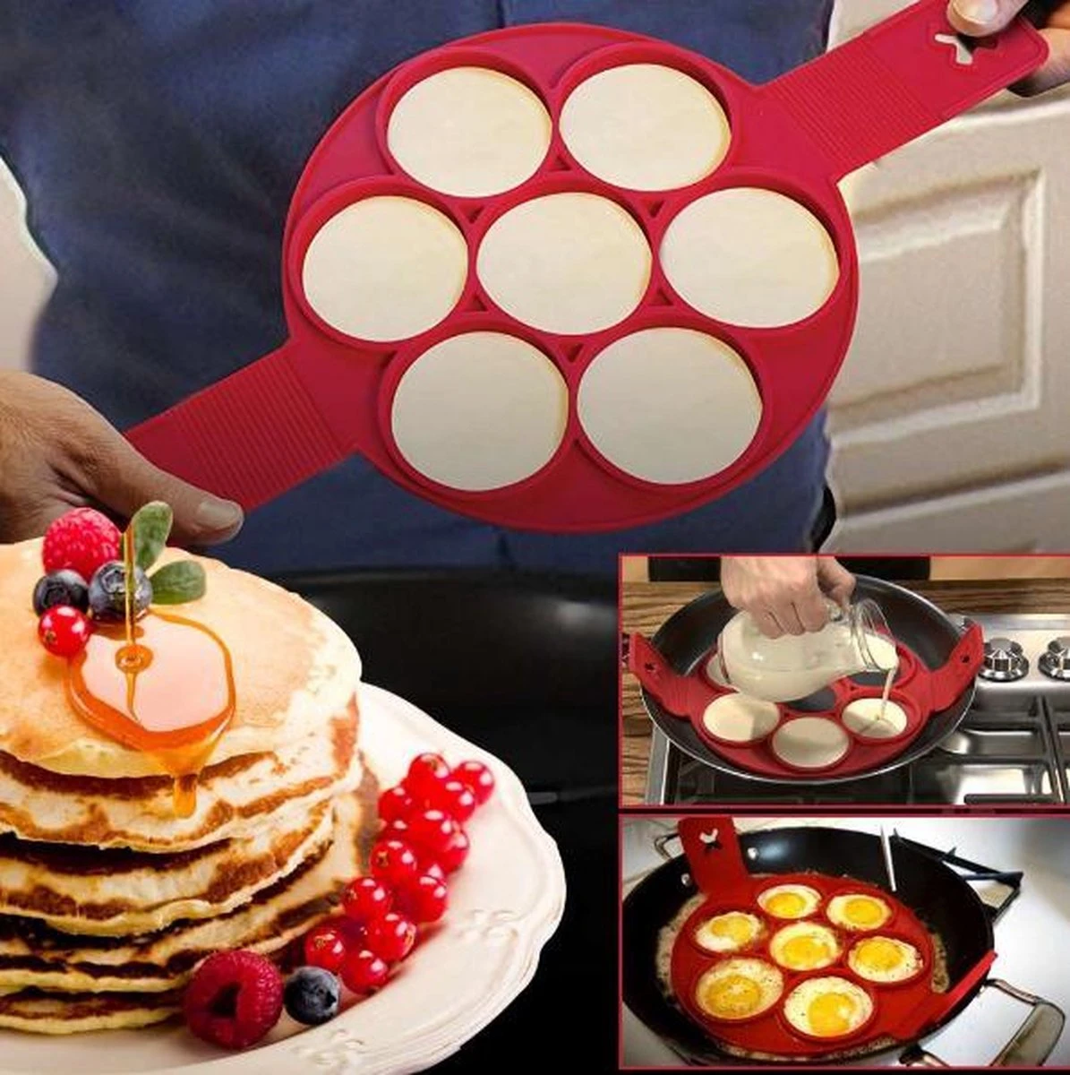 Handige pannenkoeken maker – Draai eenvoudig 7 pannenkoekjes, gebakken eieren en andere ronde gerechten om – Siliconen bakvorm