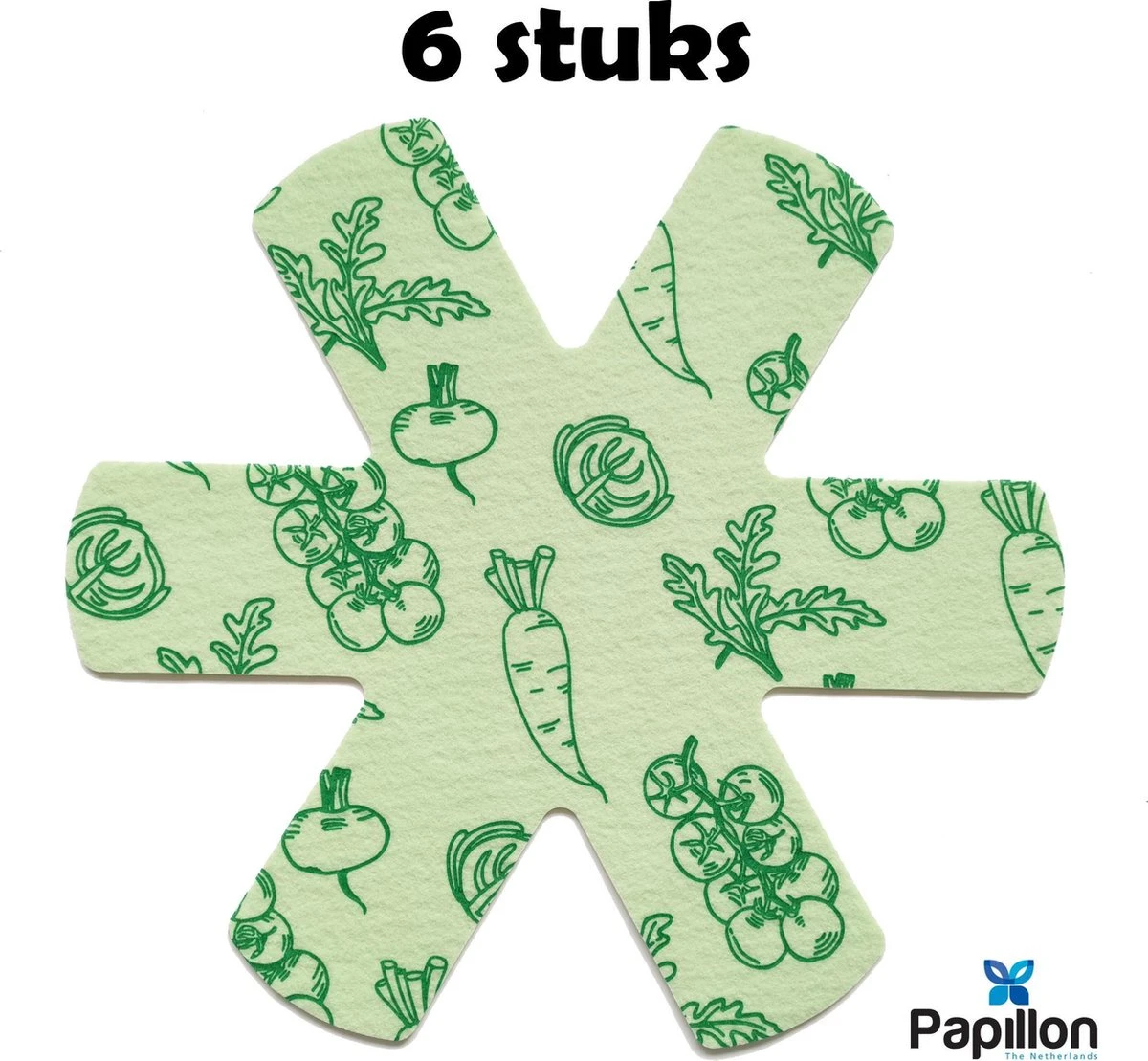 Superzachte panbeschermers van Papillon. 6 stuks van Ø38 cm met een verrassend leuk ‘Groente’ motief.