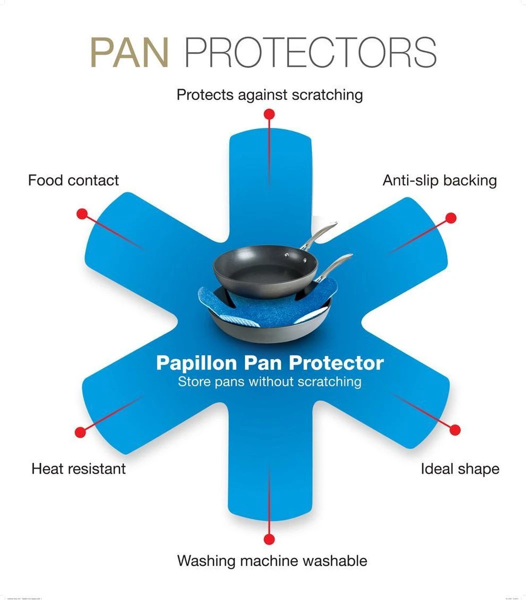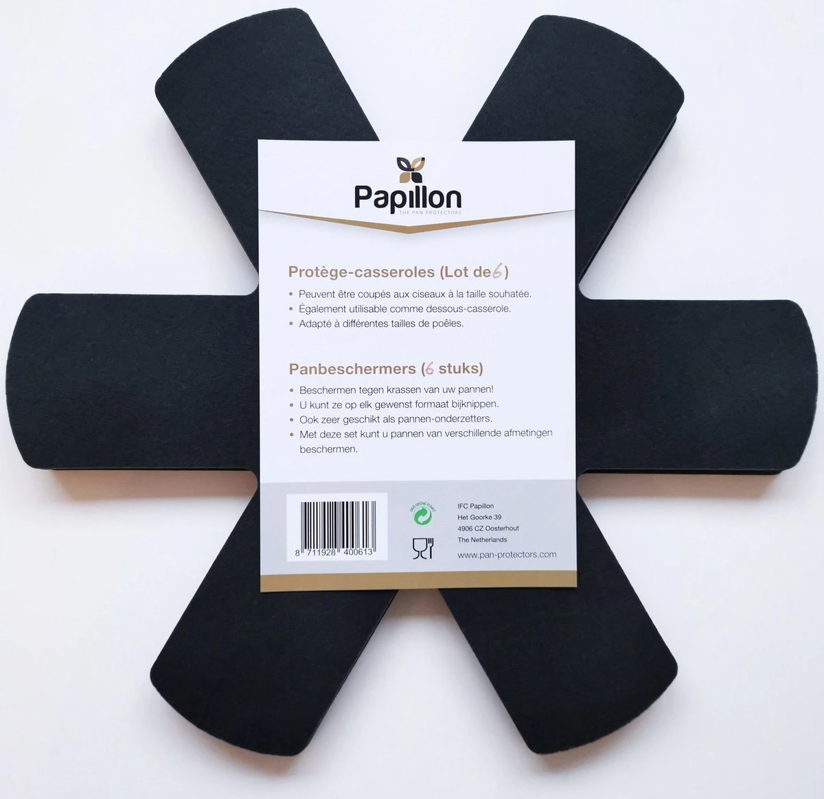 Antibacteriële Papillon panbeschermers. Het is een voordeelset van 6 stuks van Ø38 cm, die uw pannen graag willen beschermen. Ze pluizen niet en hebben een speciale antislip onderzijde.