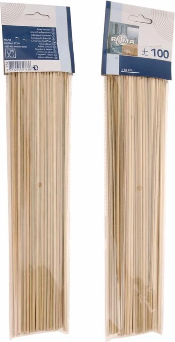 Sateprikkers 100 stuks 25 cm. Bamboe satestokjes van ongeveer 25 cm lang. U ontvangt 100 sateprikkers.