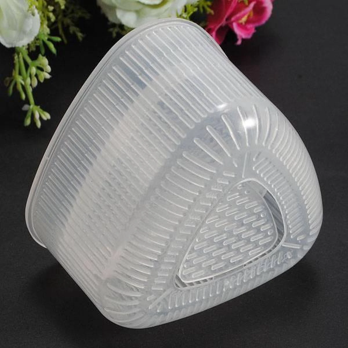 Druk op het klepje aan de achterkant om de rijst uit de mal te halen.