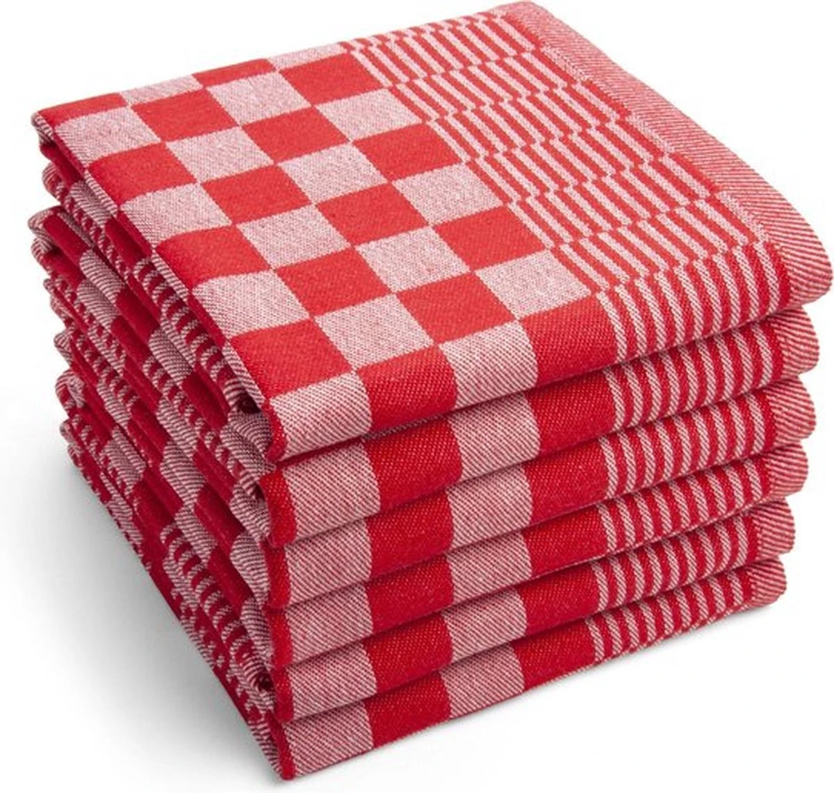 Merkloos Theedoekenset Blok Rood – 65×65 – 6 Stuks – Geblokt – Blokdoeken – 100% Katoen – Horeca Theedoeken – Vaatdoek – Theedoek Geruit