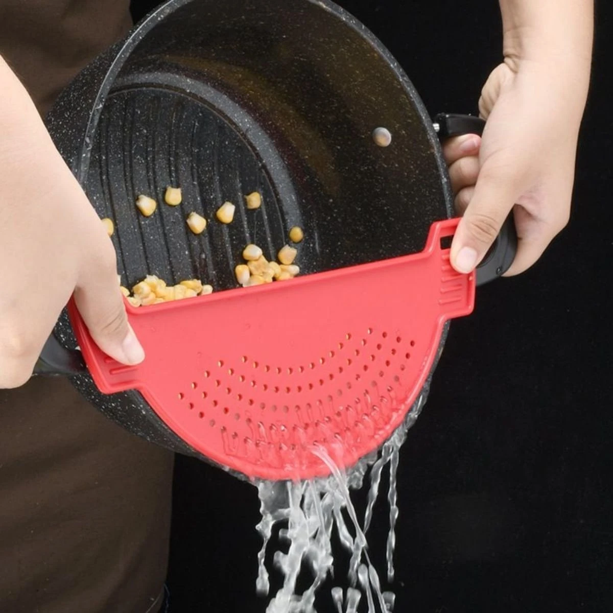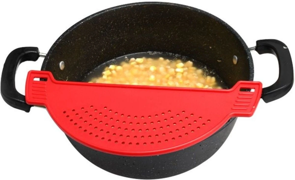 Door het maan-vormige ontwerp zal deze zeef op de meest potten en pannen passen!