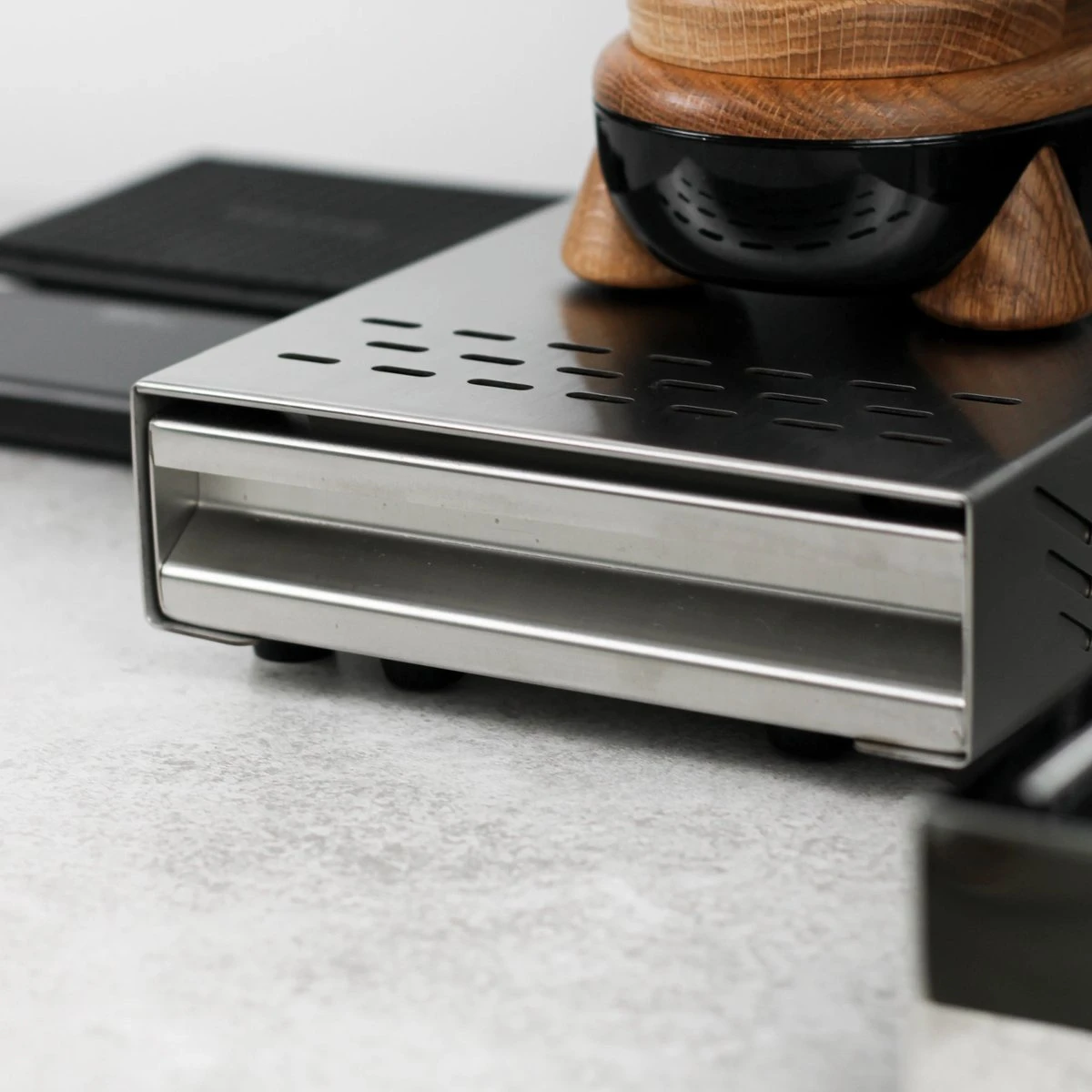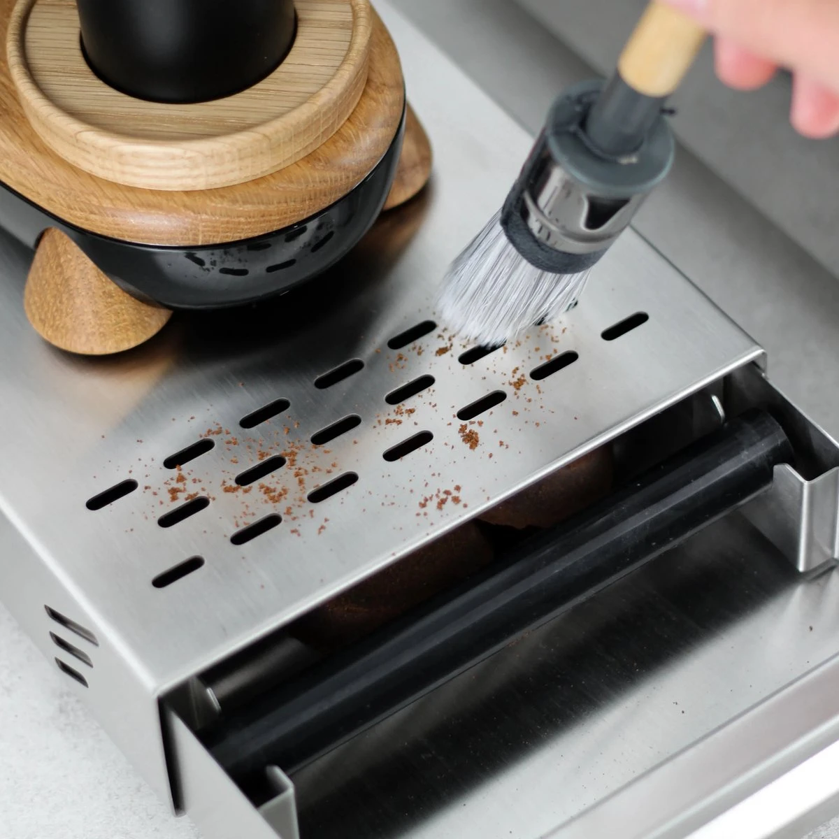 De uitkloplade is gemaakt van RVS en speciaal ontworpen om je Sage, Eureka, Rancilio of Ascaso bonenmaler op te plaatsen. Dankzij de ventilatie gaatjes op de bovenkant van de uitkloplade veeg je gemalen koffie eenvoudig weg en voorkom je dat gebruikte koffie pucks beschimmelen.