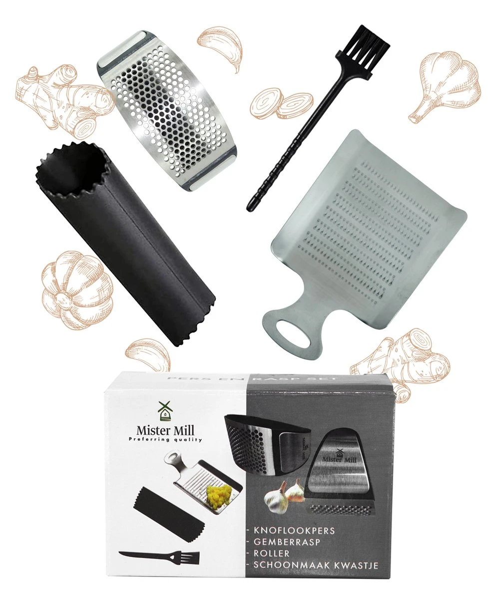 Omdat je niet alleen knoflook in je gerechten wil bereiden heeft Mister Mill deze set zelf samengesteld, in een keer alles in huis om ook andere knolsoorten en groenten te verwerken in jouw selfmade gerechten.