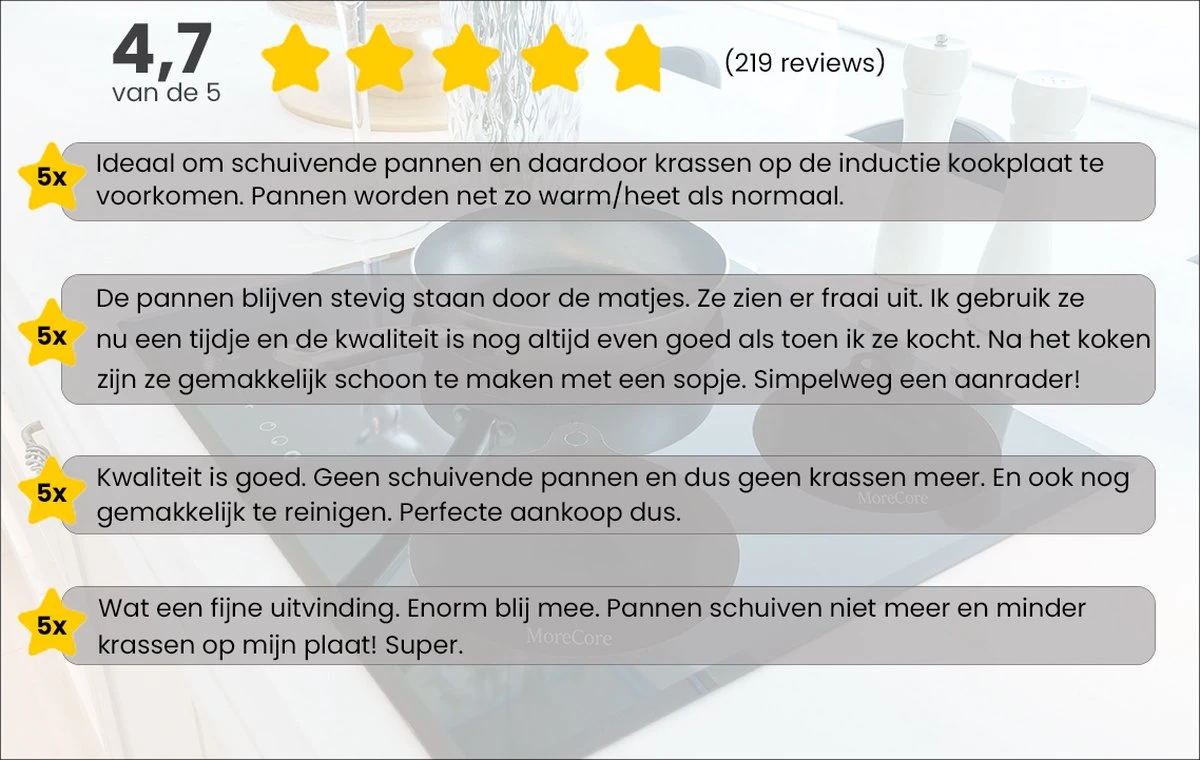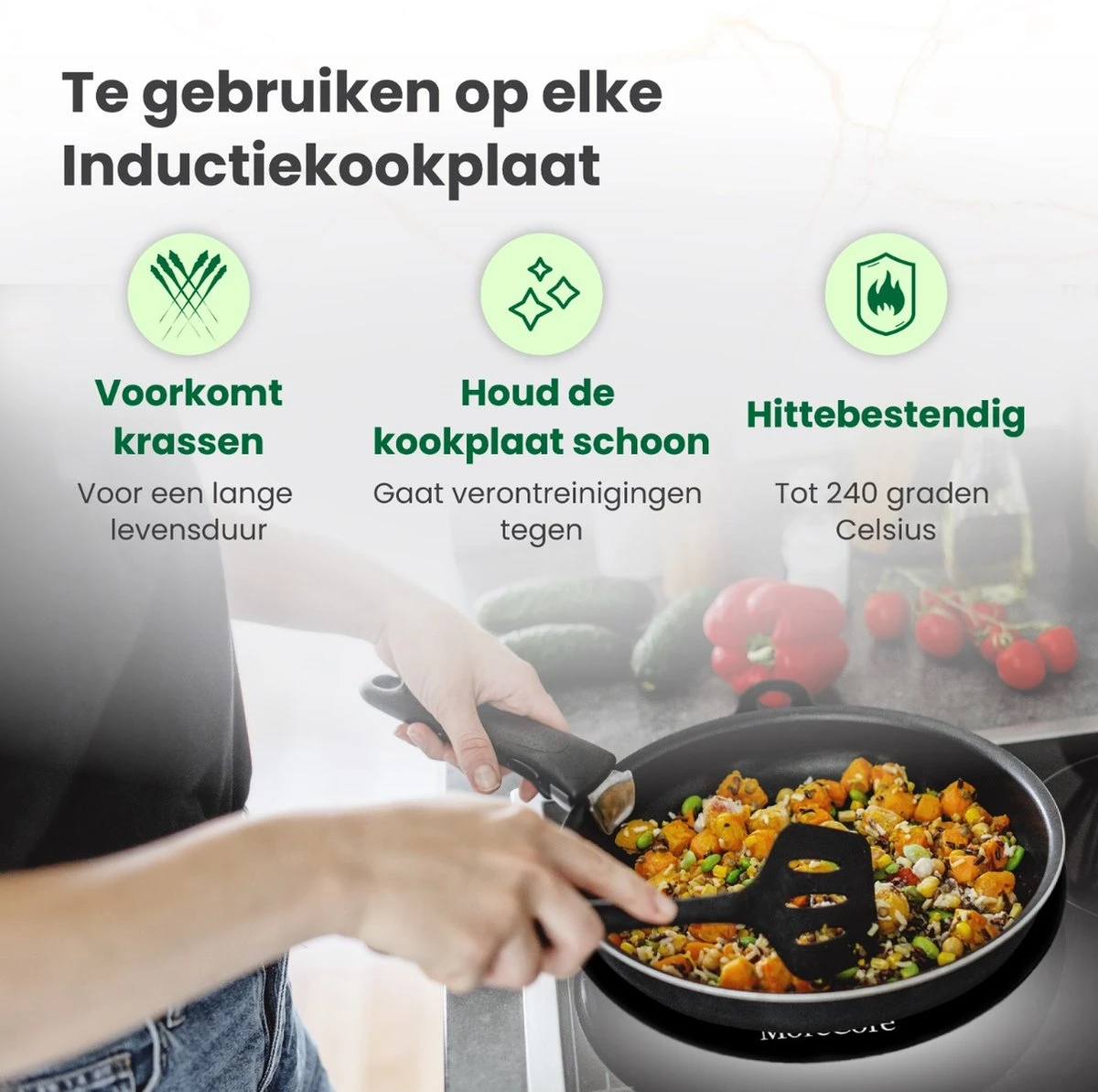 De MoreCore inductie beschermingsmat heeft het allemaal. Druk op ‘In winkelwagen’ voor meer kookplezier in uw keuken.