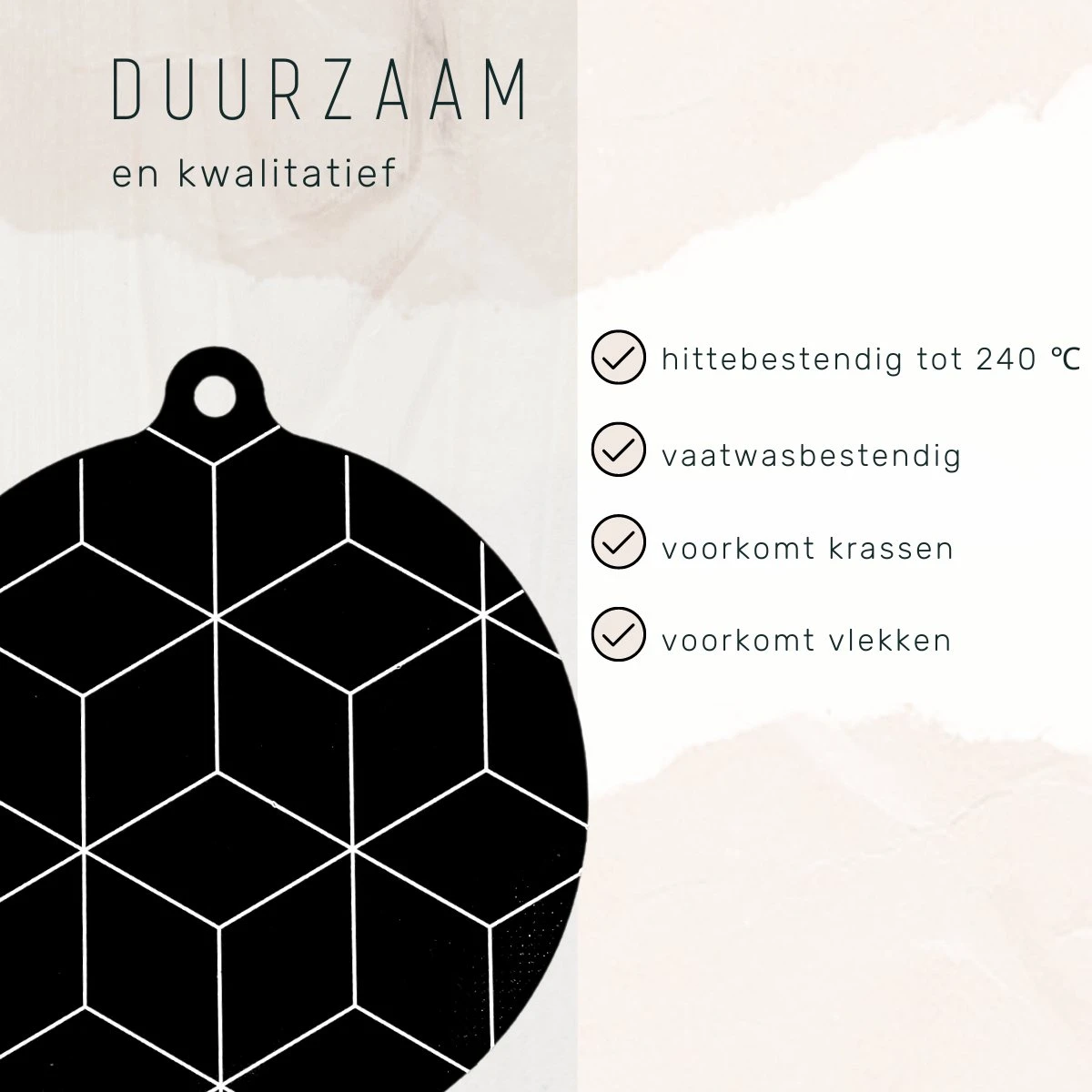 De matjes zijn gemakkelijk te wassen onder de kraan óf in de vaatwasser. Ze zijn duurzaam, flexibel en stevig. Via het handige ophangoogje kun je ze ophangen waar je maar wilt. Het design misstaat wat ons betreft zeker niet in menig keuken!