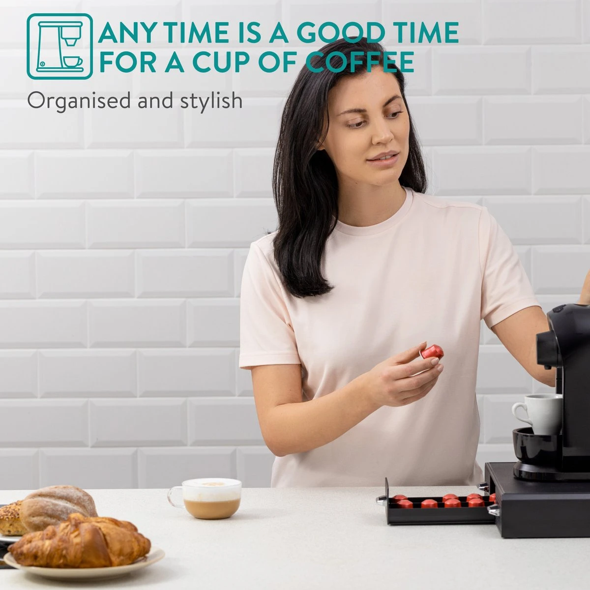- KOFFIETIJD: Met deze platte capsulehouder met lade bewaar je je Nespresso koffiecups in stijl. Altijd een opgeruimde keuken en je lievelingskoffie binnen handbereik.