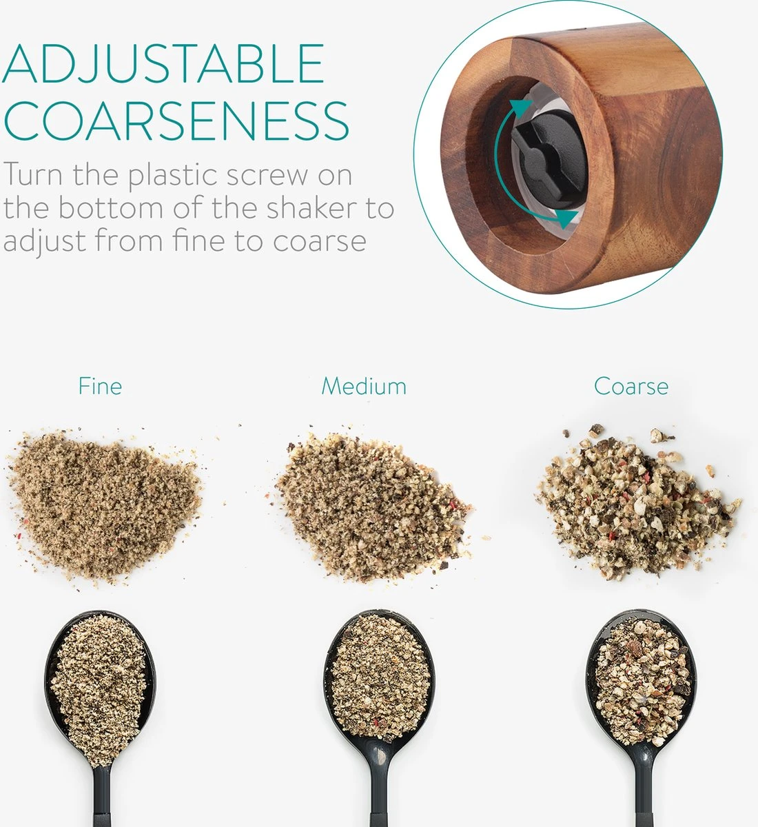- Het lichtgewicht ontwerp van prachtig acaciahout maakt deze molens ideaal voor picknick, diners, feestjes en BBQ’s.