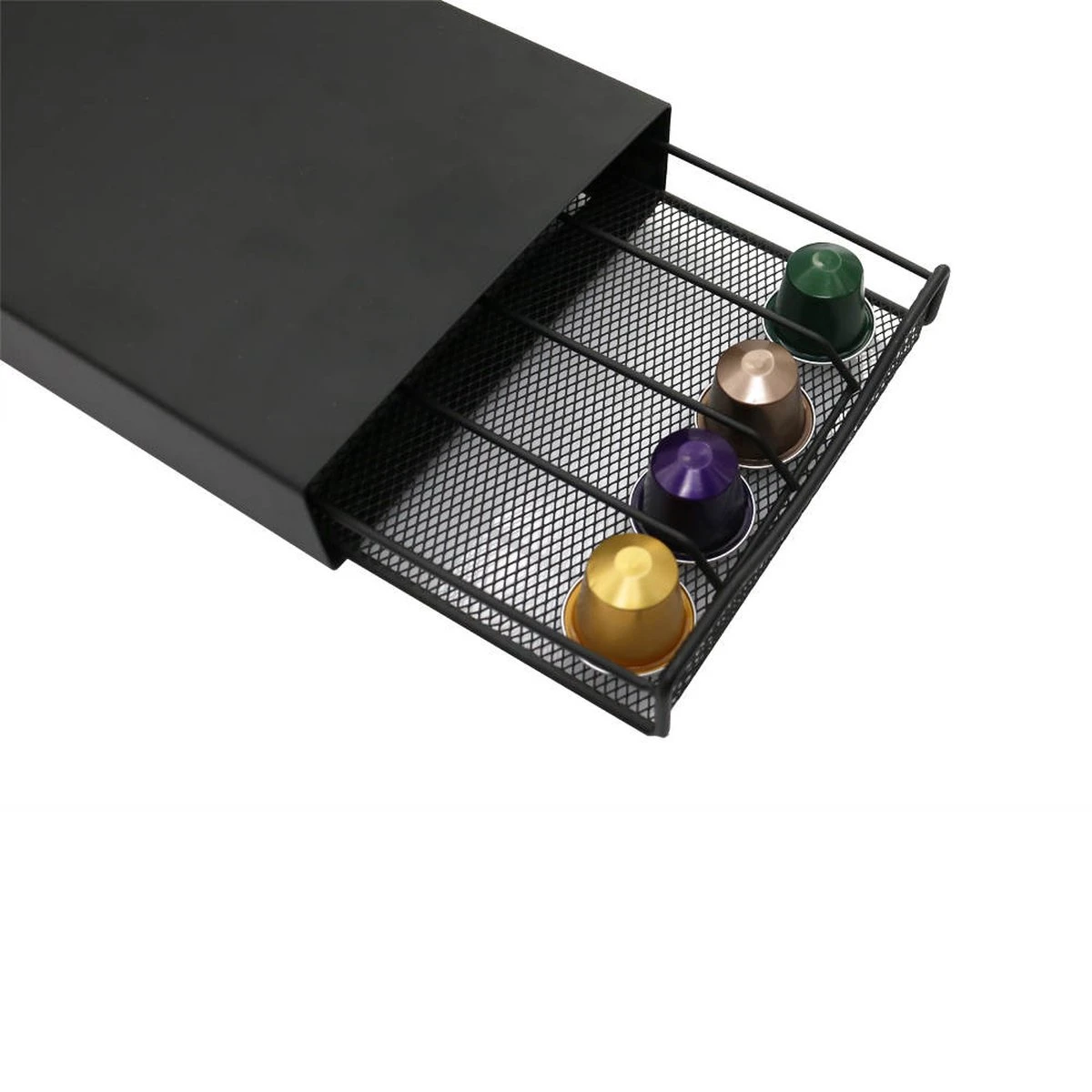 Ben jij een fan van Nespresso? Met deze handige lade voor je cups heb je je favoriete Nespresso cups overzichtelijk in één lade. Door het platform op de lade kun je je Nespresso apparaat er gemakkelijk op zetten. Zo heb je alles bij elkaar en kost het geen extra ruimte!