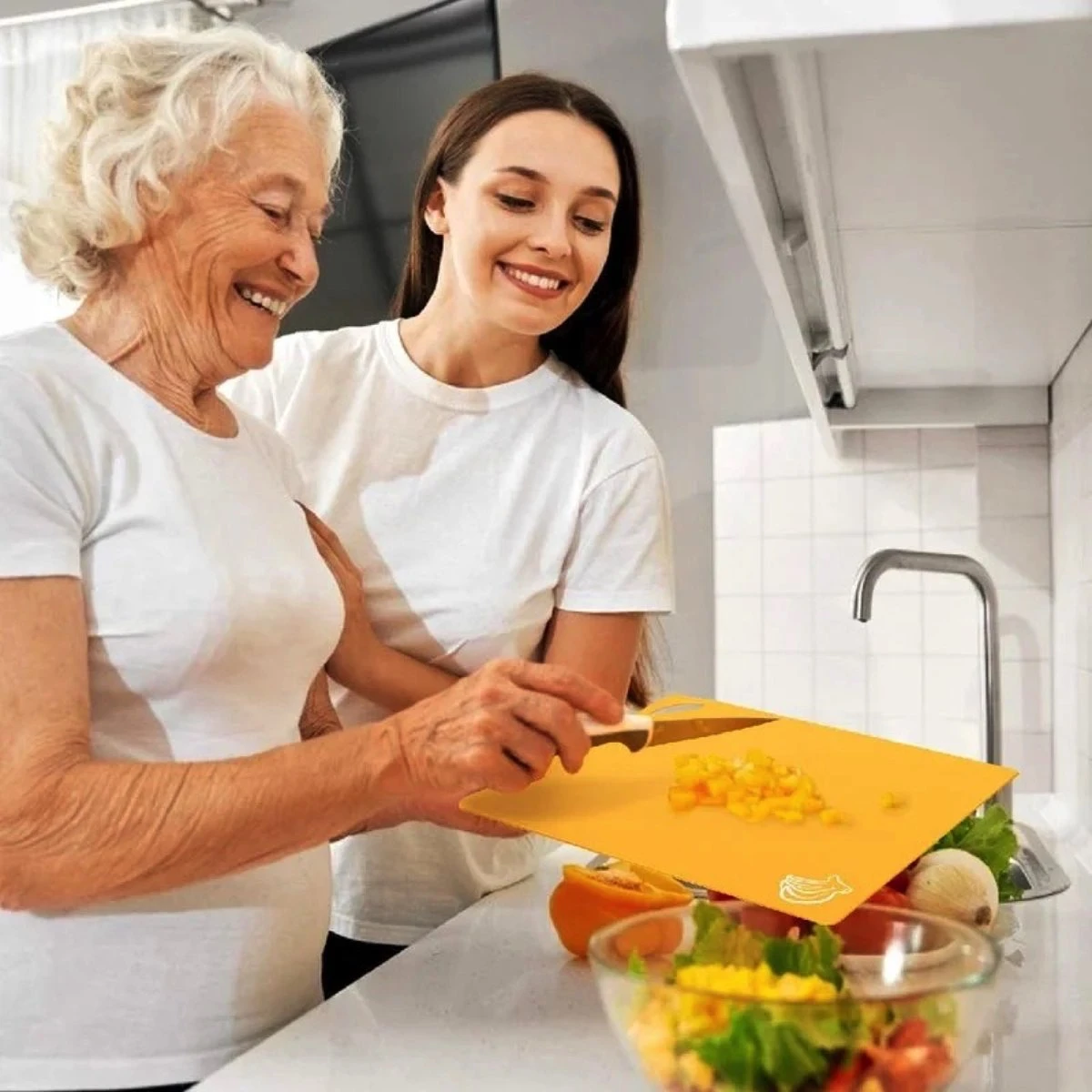 - Elke snijplank (30,5cm × 38 cm) is gemakkelijk op te bergen en onder een bepaalde hoek te krullen. Dit is handig om het gehakte voedsel direct en snel in de wok of ander keukengerei te mengen. Bovendien hoef je je geen zorgen te maken dat het mes bot zal worden.