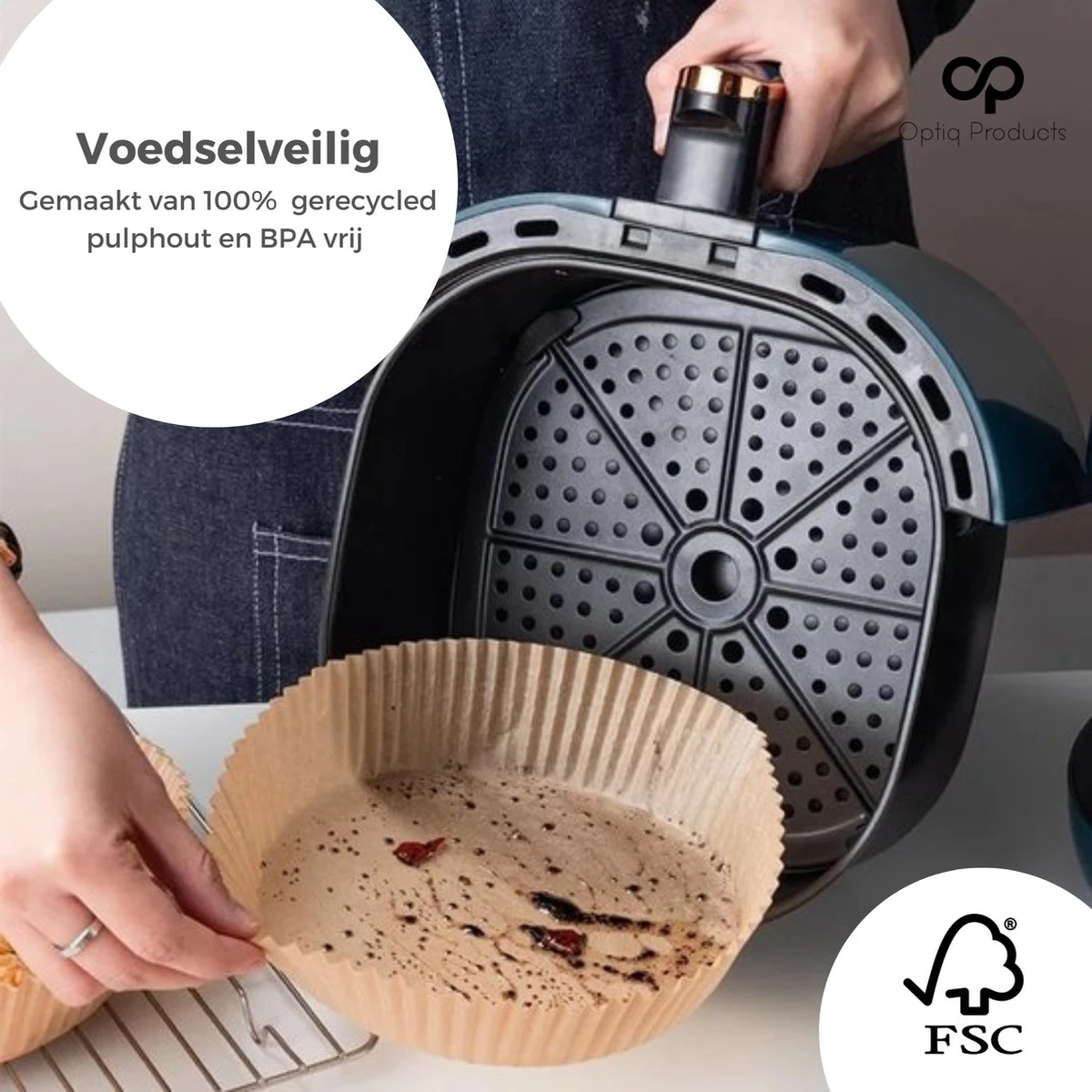 Je Airfryer netjes en schoon houden? Ja hoor, dat kan! Dankzij de Optiq Products® Airfryer Bakpapier bakjes kun jij lekker blijven bakken, grillen of stomen zonder vuil of vet achter te laten in jouw Airfryer. Zo kun jij jouw tijd besteden aan wat echt belangrijk is!