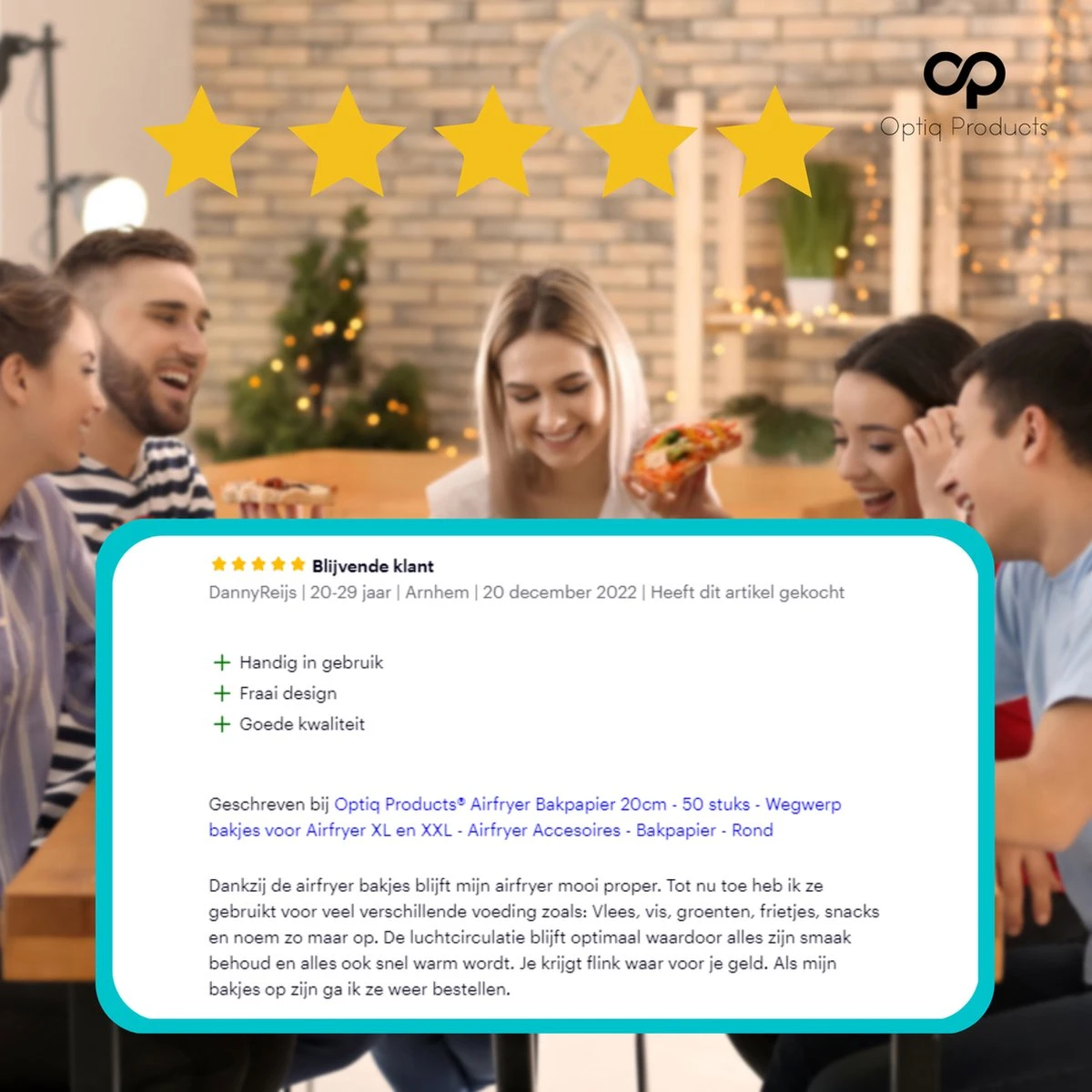 Onze Optiq Products® Airfryer bakpapier is gewaarborgd door onze 100% tevredenheidsgarantie. Wanneer je niet volledig tevreden bent met ons product, krijg je bij het aanmelden van een retour netjes je aankoopbedrag terug!