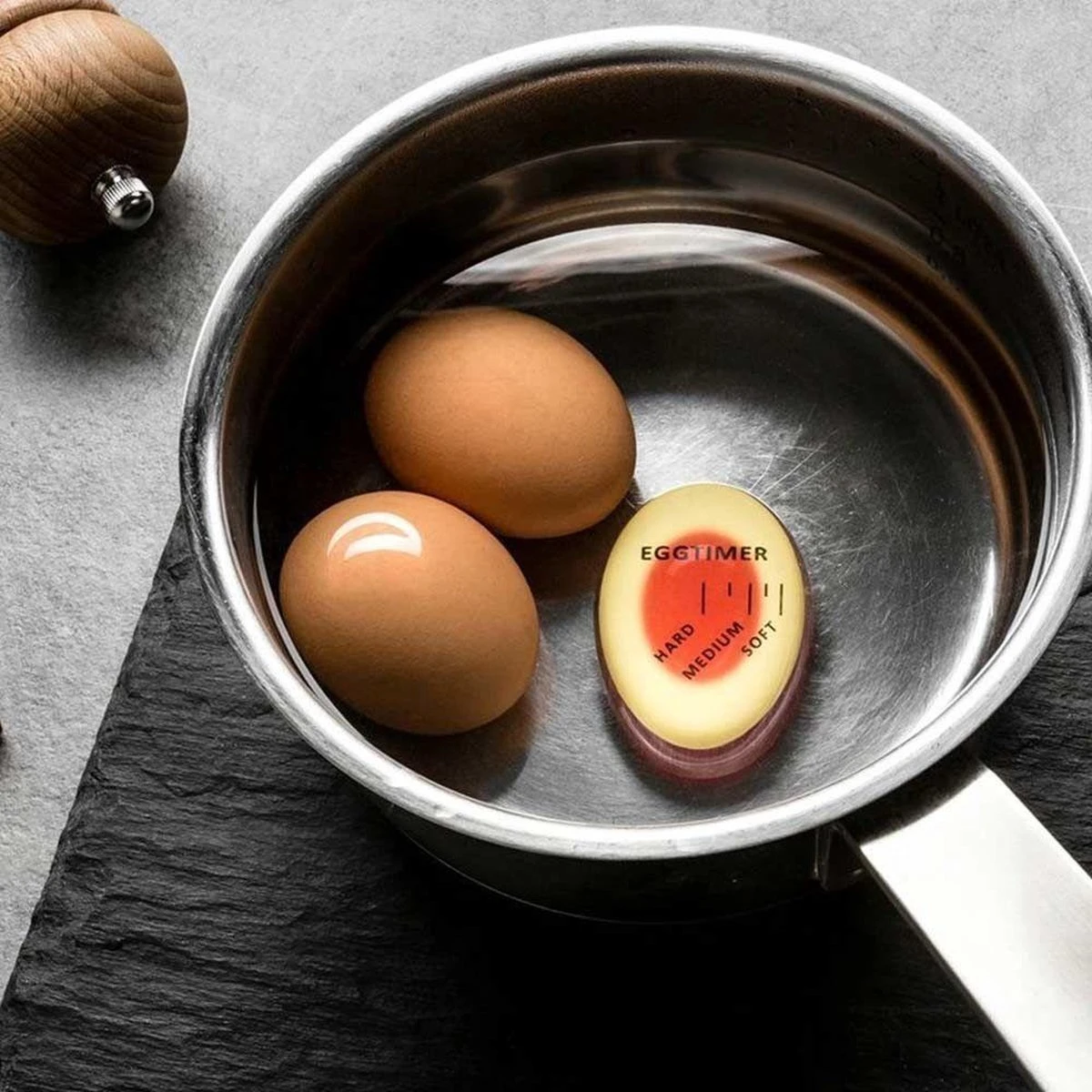 Orange85 eierwekker.Doe dit kunststof ei in het kokende water bij je eieren en je zult zien dat het ei tijdens het koken verkleurt en zo precies aangeeft wanneer je eieren klaar zijn. Hardgekookt, medium of zachtgekookt, het indicatie ei geeft het feilloos aan!