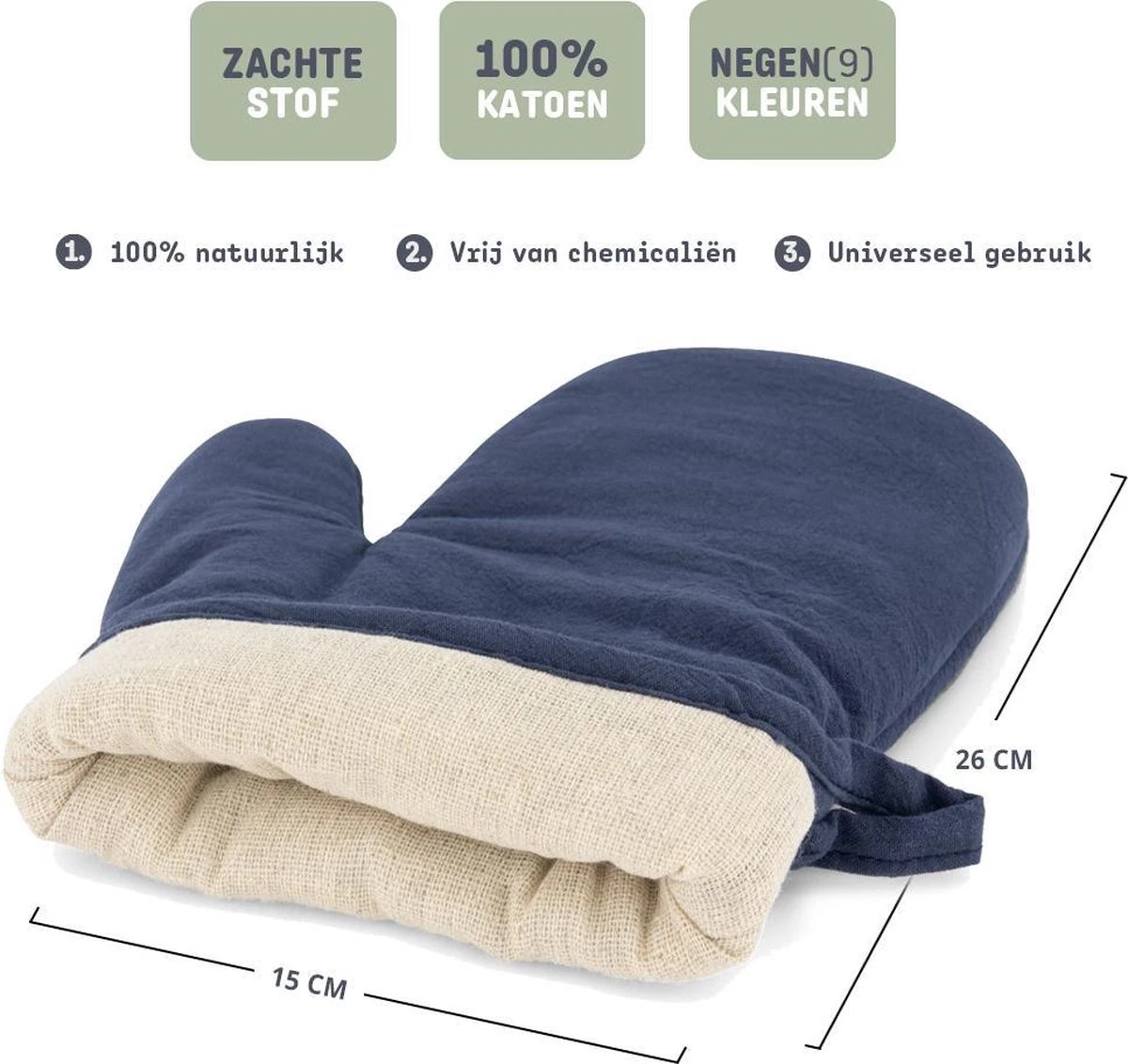 Ovenwanten Van Sophie Nordinn® – Ovenhandschoenen Nora (Donkerblauw) – Ovenwanten 2 Stuks – Ovenwant Katoen