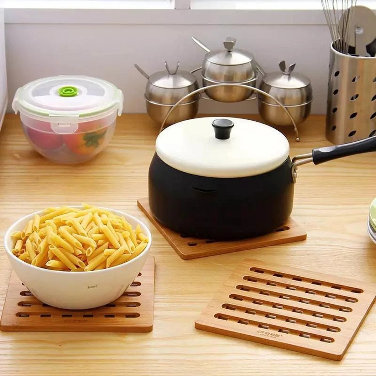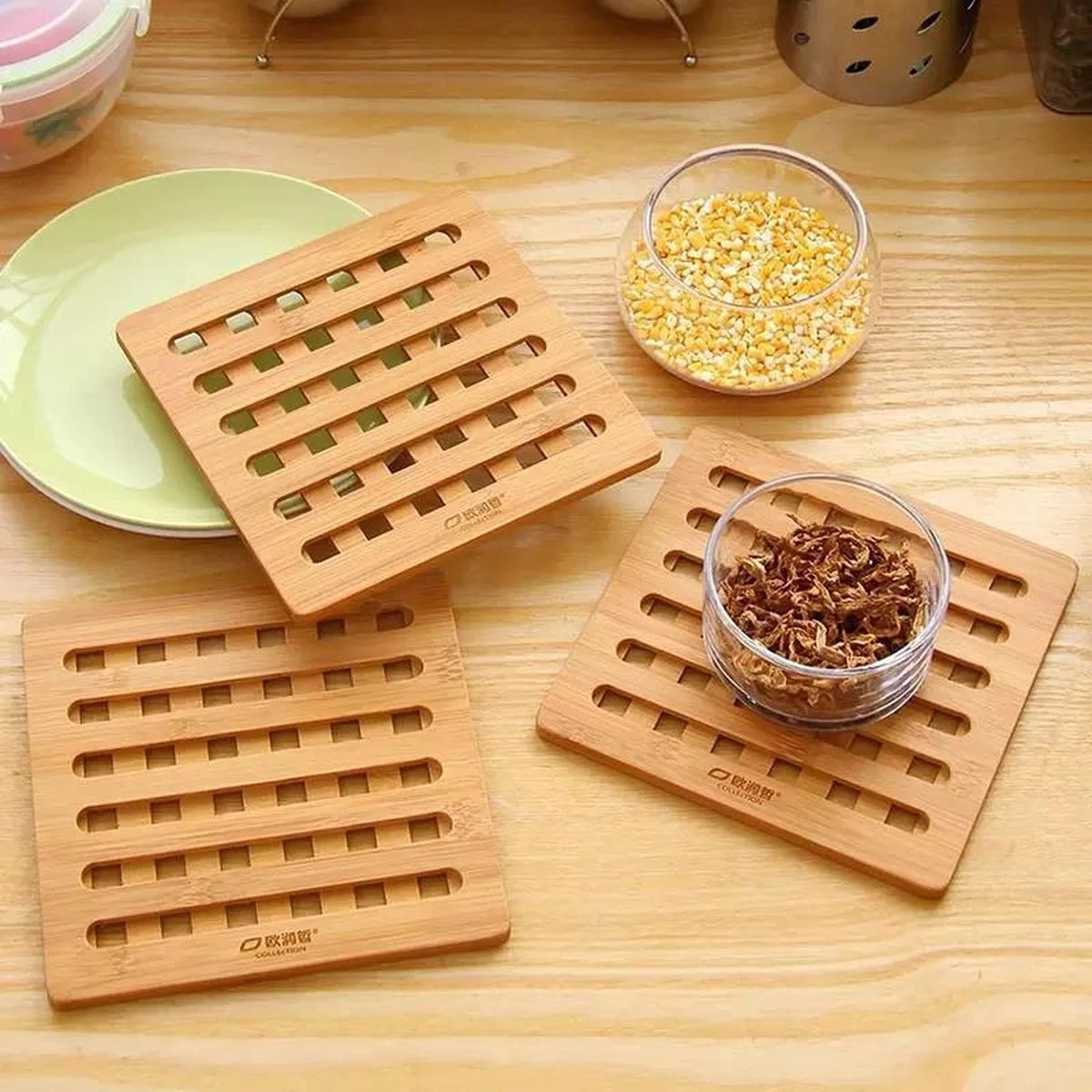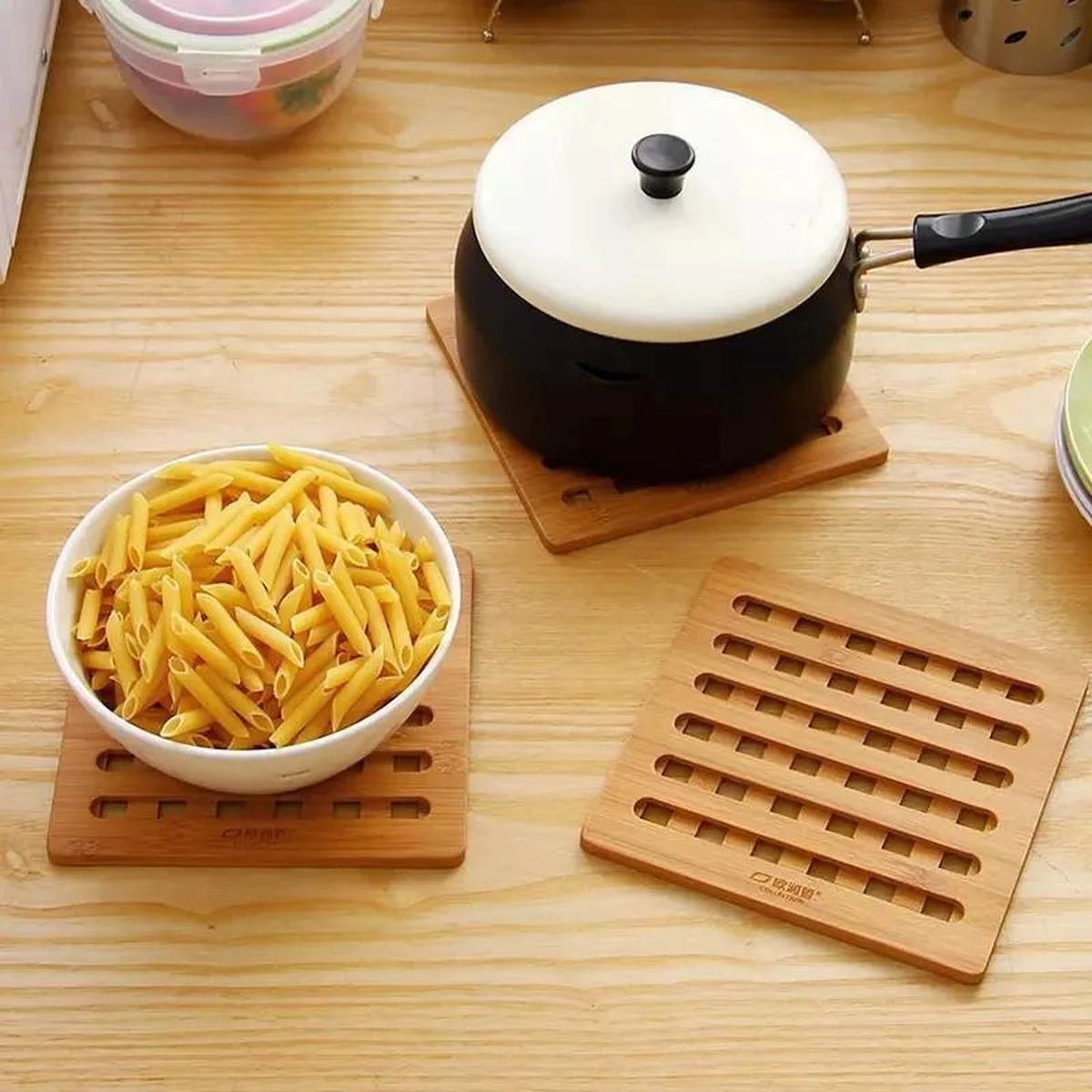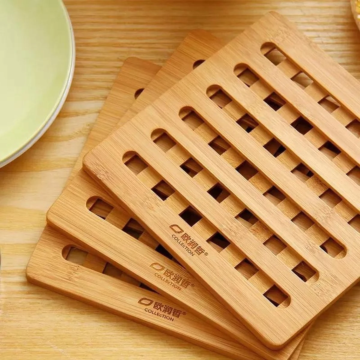 Bescherm je tafel of keukenblad met deze hittebestendige bamboe onderzetters tegen lelijke brandplekken door hete pannen.