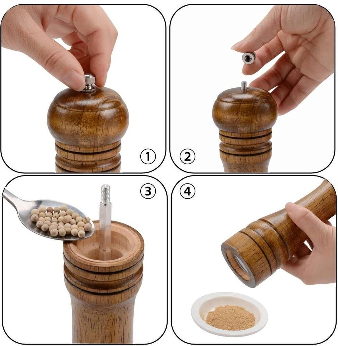 - Hervulbare peper- en zoutmolens: Professionele peper- en zoutset zijn volledig navulbaar. Vul eenvoudig zeezout of zwarte peper in de pepermolen of zoutmolen door de bovenklep te verwijderen, zonder geknoei.
