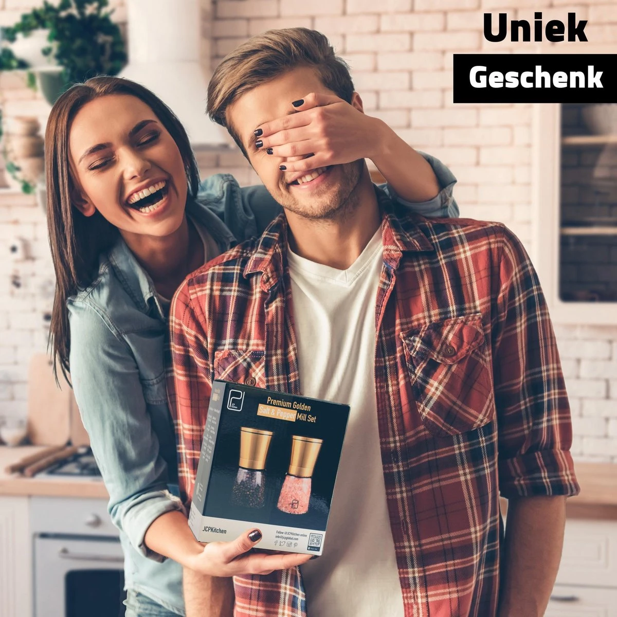 ✅ HOOGWAARDIGE ROESTVRIJSTALEN ZOUT- EN PEPERMOLENSET – Onze JCPKitchen zout- en pepermolens zijn uitgerust met roestvrij staal en glas van de hoogste kwaliteit. Alle materialen zijn BPA-vrij, getest en veilig. Met zijn chique gouden kleur is het de perfecte aanvulling in elke keuken of eettafel. Het is elegant, modern en stijlvol, het perfecte cadeau!