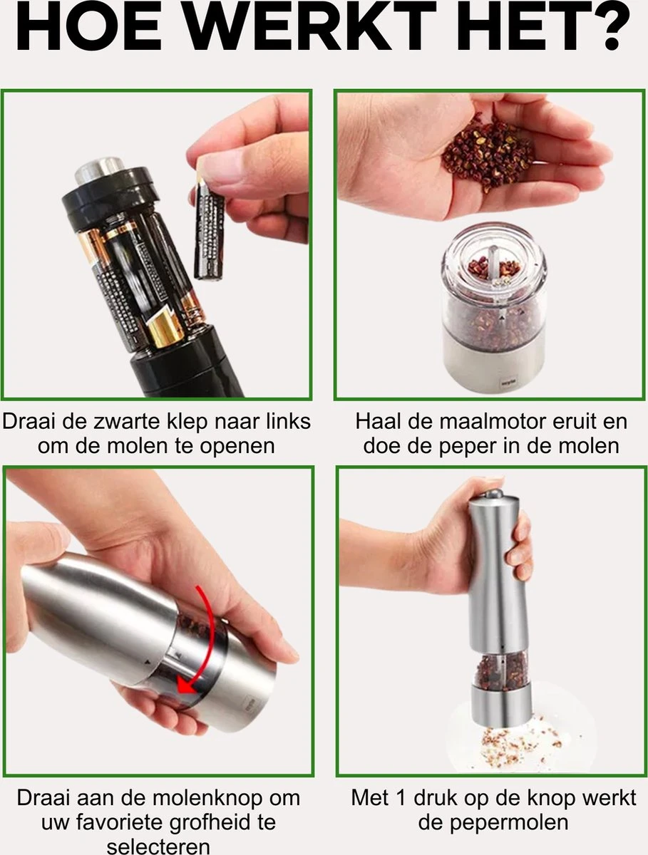 Bent je op zoek naar rust voor je polsen en moeiteloos peper en zout malen met maar 1 hand? Dan is de Butles elektrische peper- en zoutmolen set wat voor jou!