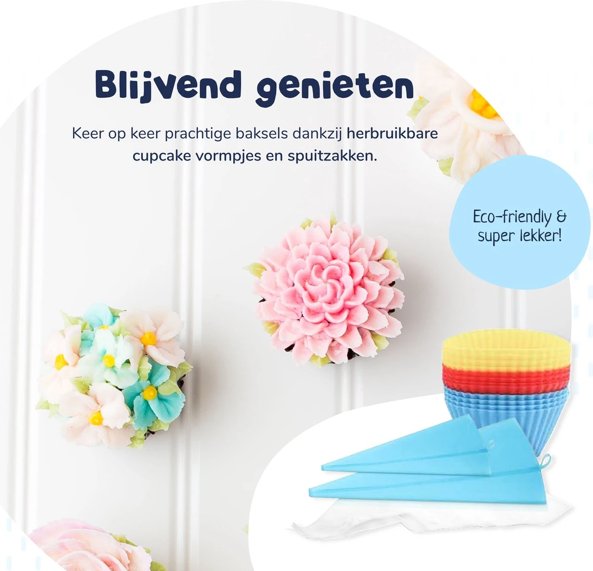 - Duurzame keuze – Voorzien van herbruikbare spuitzakken, bakvormpjes, en RVS voor oneindig bakplezier. Minder weggooien is milieuvriendelijk en in dit geval ook nog eens super lekker! 😉