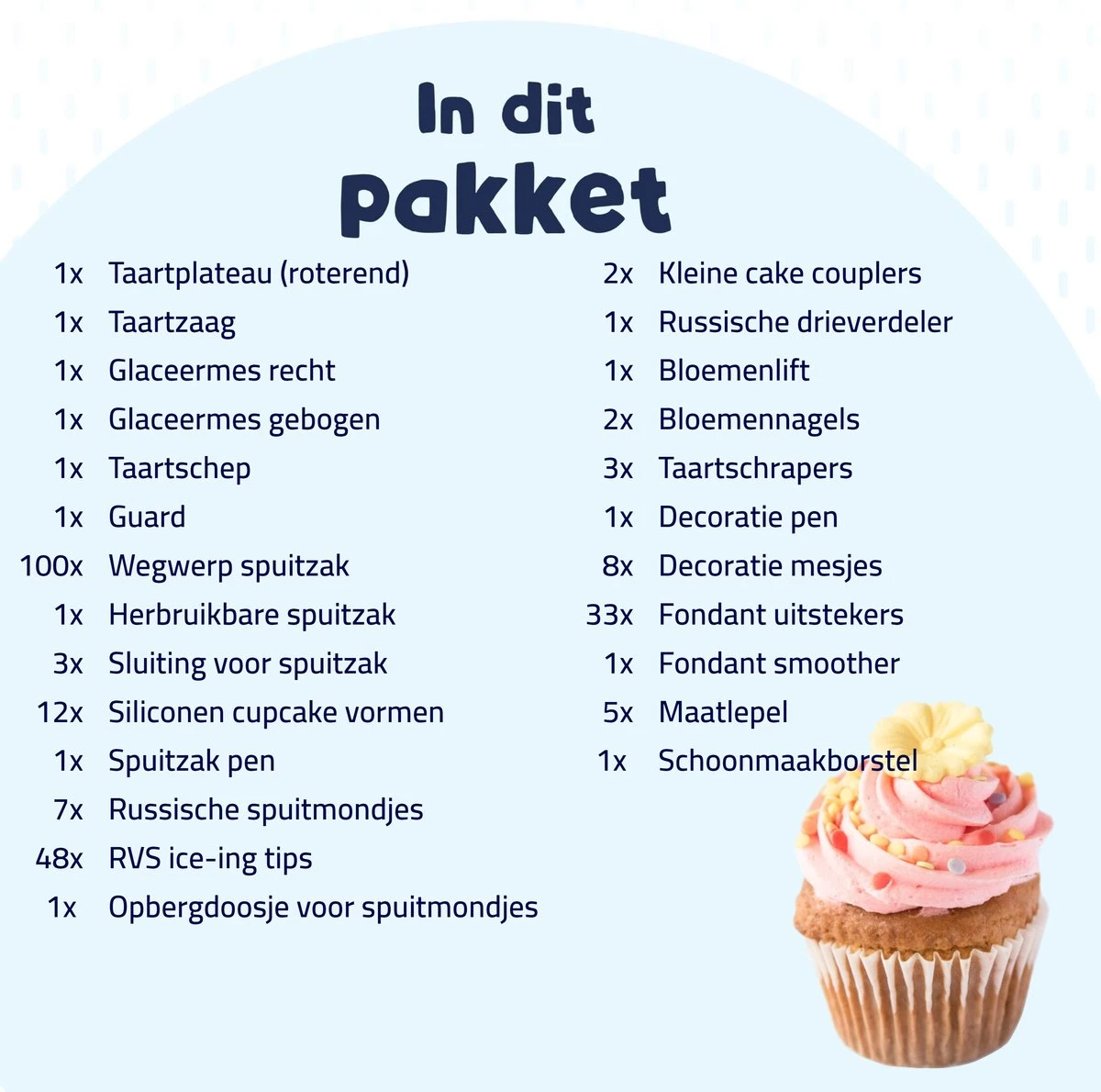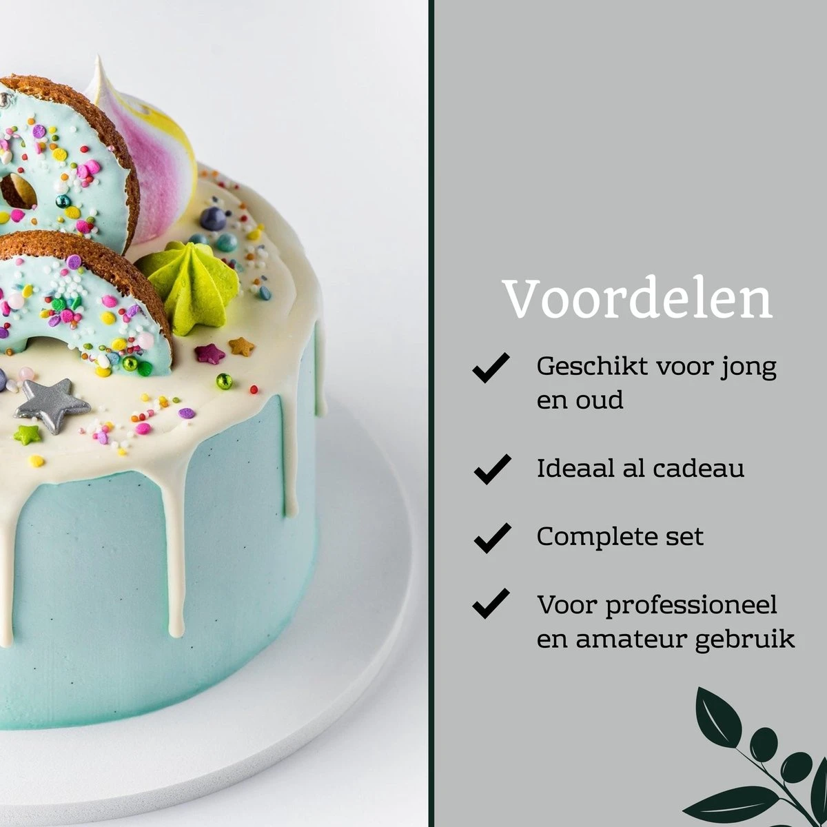 - Extreem uitgebreid – Speciaal samengesteld voor bakplezier van beginners én professionals. Alles in huis om direct te bakken én versieren!