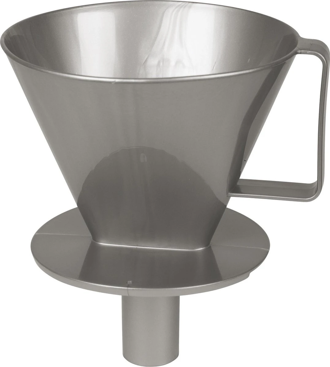 Een stevige koffiefilterhouder. Deze koffiefilter is geschikt voor filterzakje no. 4. Kan worden gebruikt boven een mok. Door de tuit aan de onderkant, is de filter ook geschikt voor gebruik op een thermosfles of koffiekan.