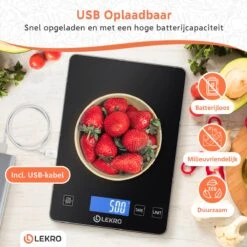 Lekro Digitale Precisie Keukenweegschaal – Weegschaal Keuken – 1gr-15kg – Tarra Functie – Zwart