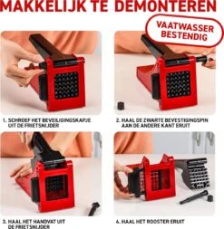 Merkloos Frietsnijder – Patatsnijder – Groentesnijder – Raspen, Schillers & Snijders – Rood